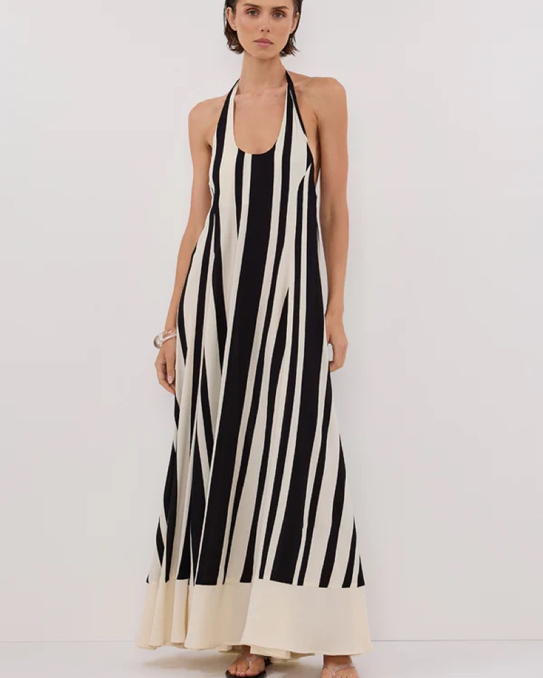 DISSH Beau Black Stripe Halter Dress
