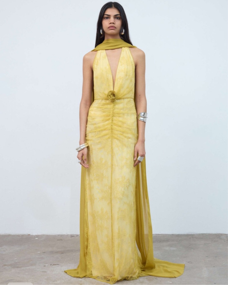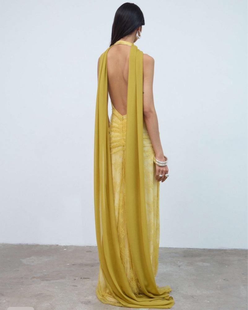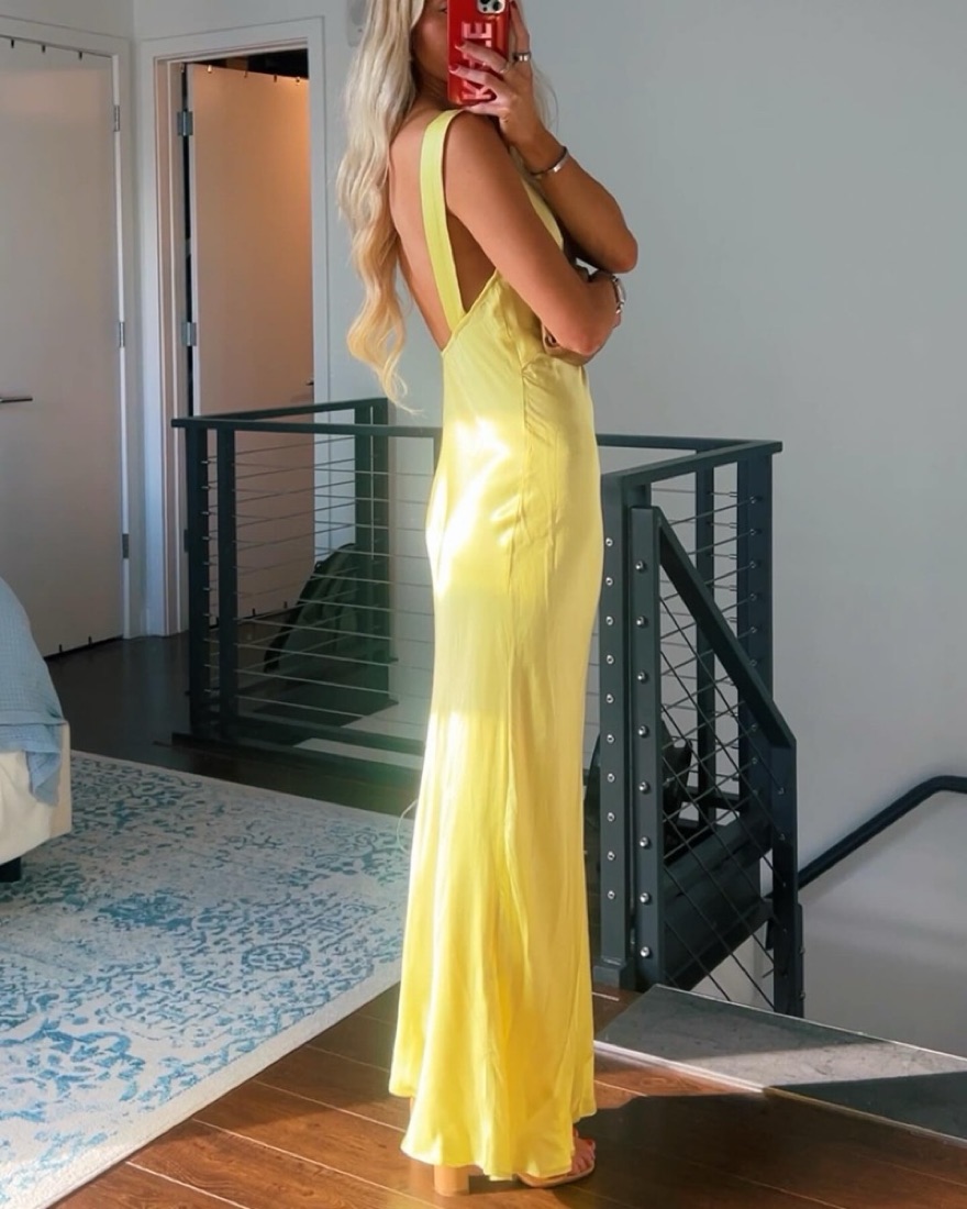 Yellow Silk Backless Gown Monique Dress