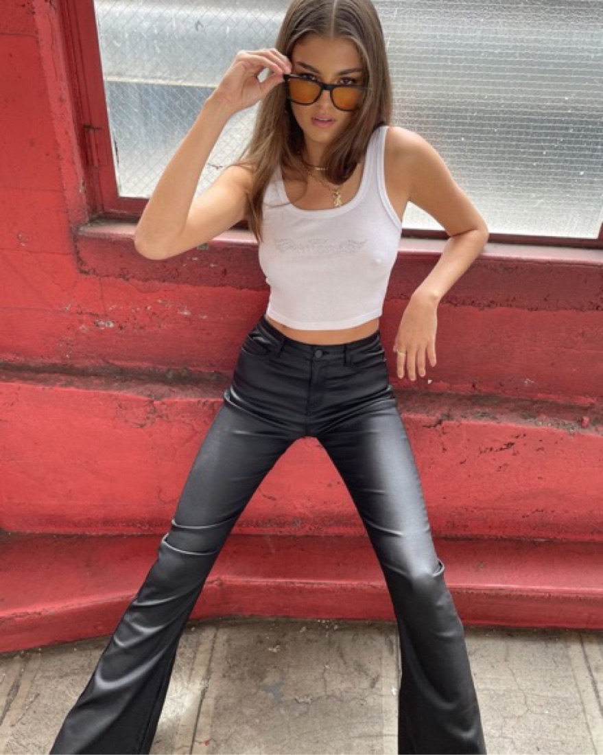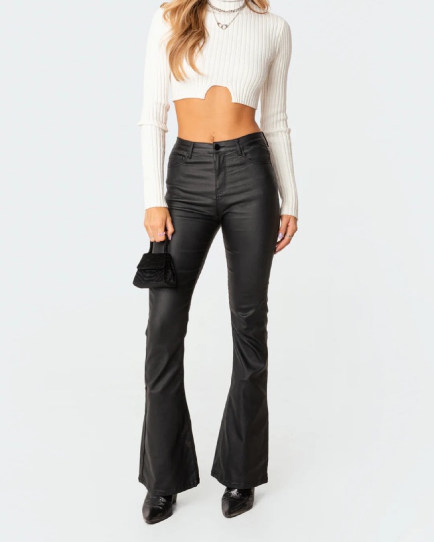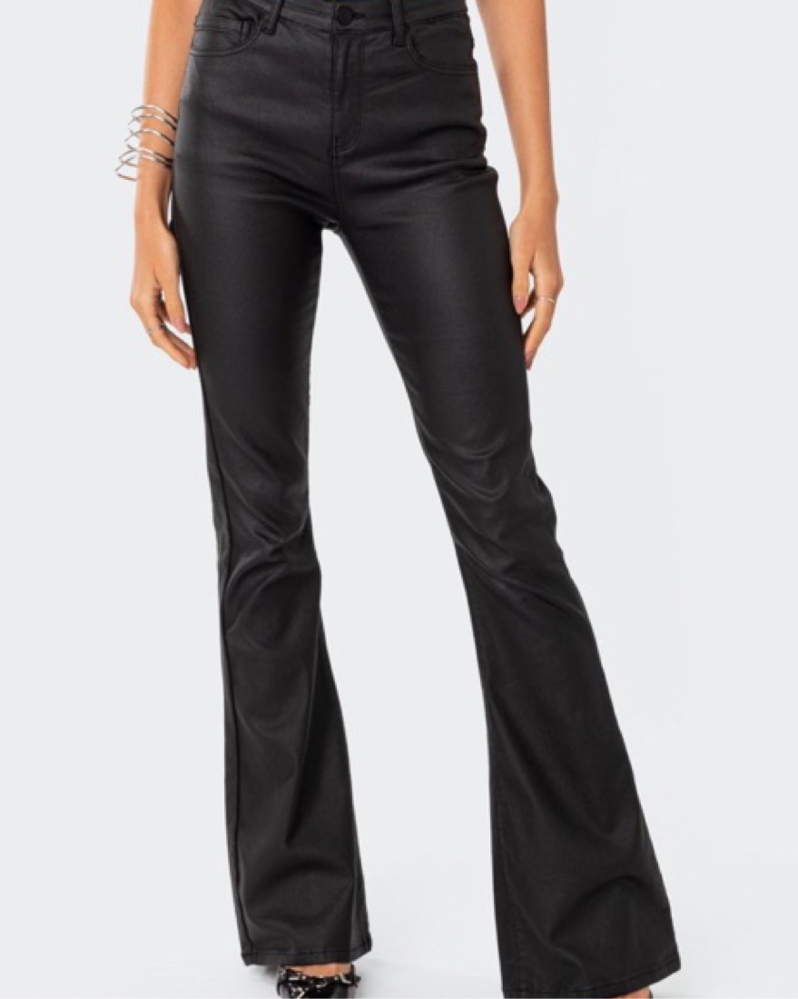 Edikted Faux Leather Flare Jeans