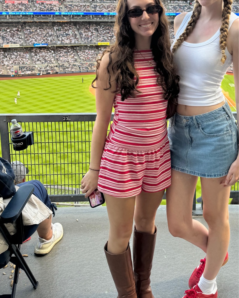 red and white striped short set