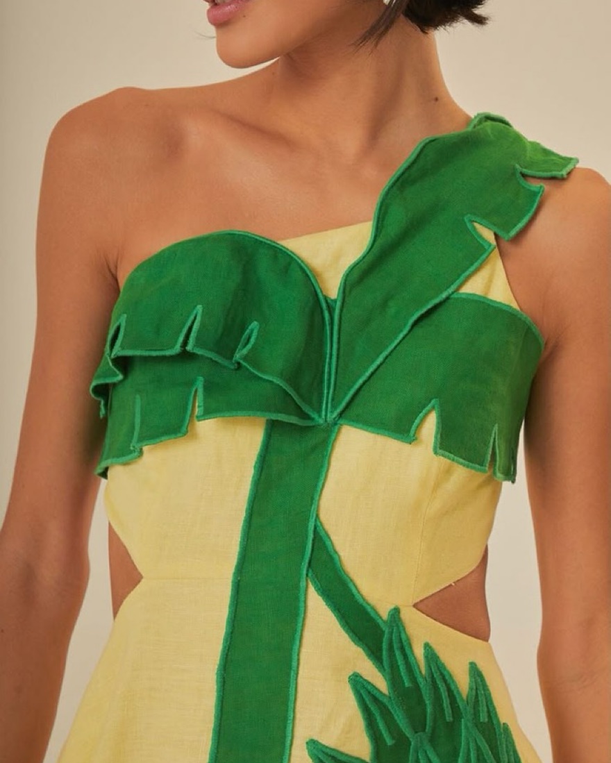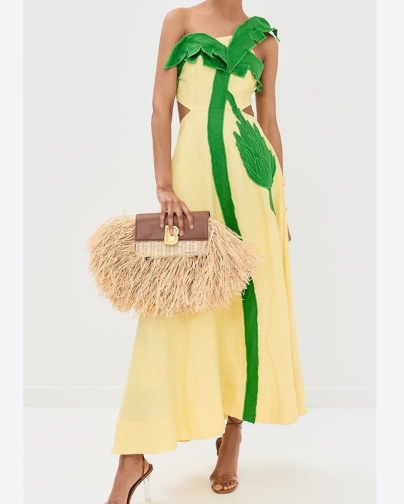 Farm Rio Papayas One-Shoulder Maxi Dress