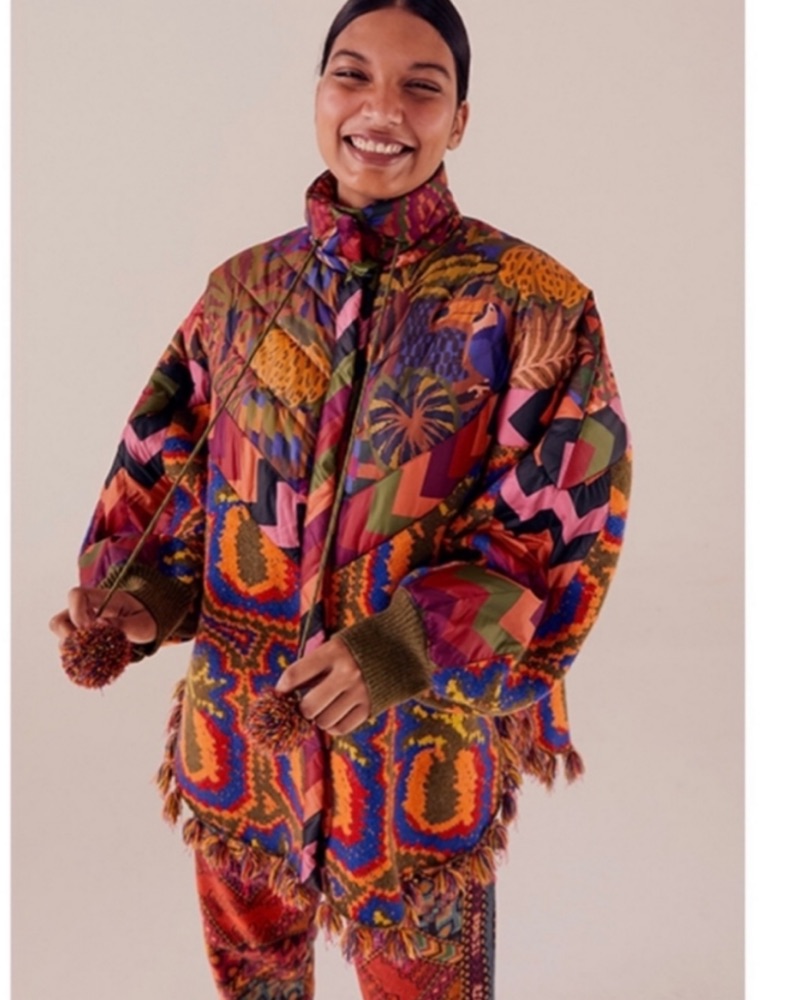 Farm Rio Patchwork Woven Puffer Jacket