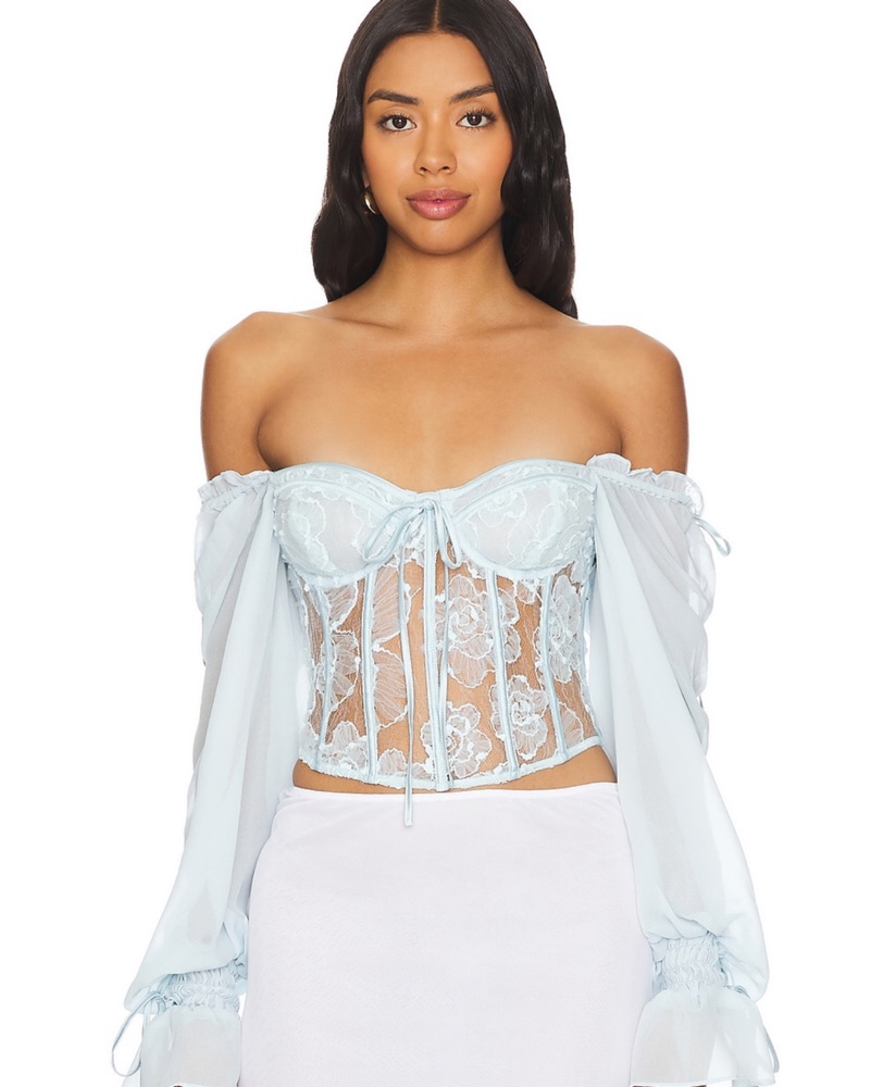 For Love & Lemons Blue Lace Corset Top