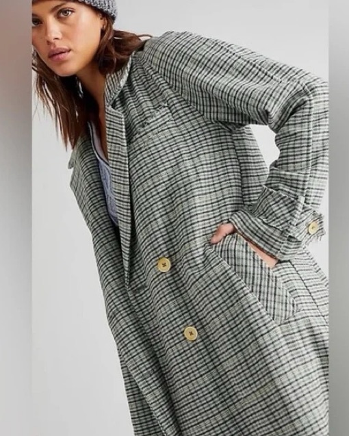 Free People Plaid Oversized Jacket