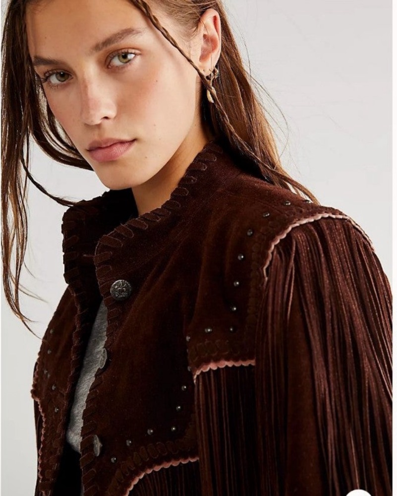 Free People Fringe Suede Brown Jacket