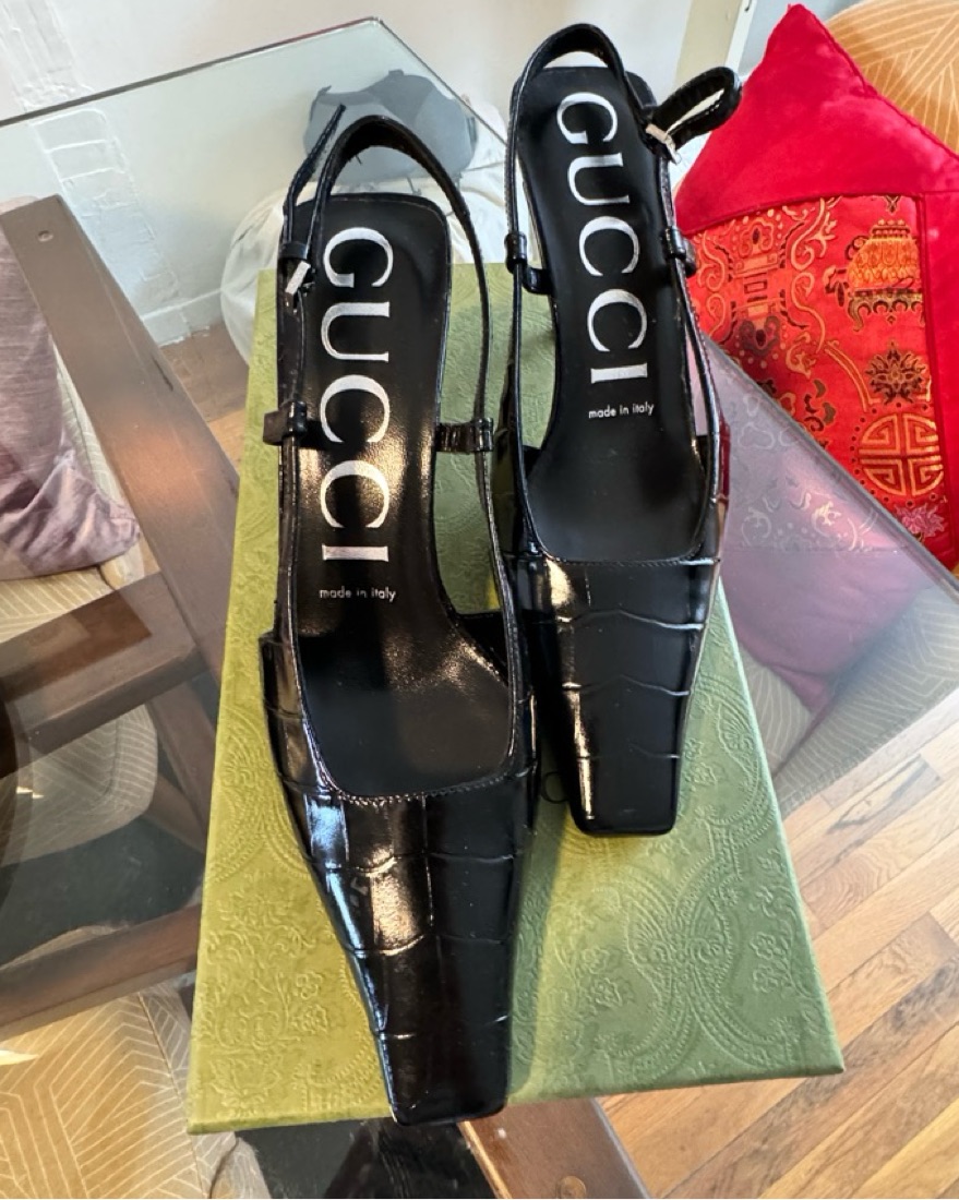 Gucci Black Croco Leatner Sling Back