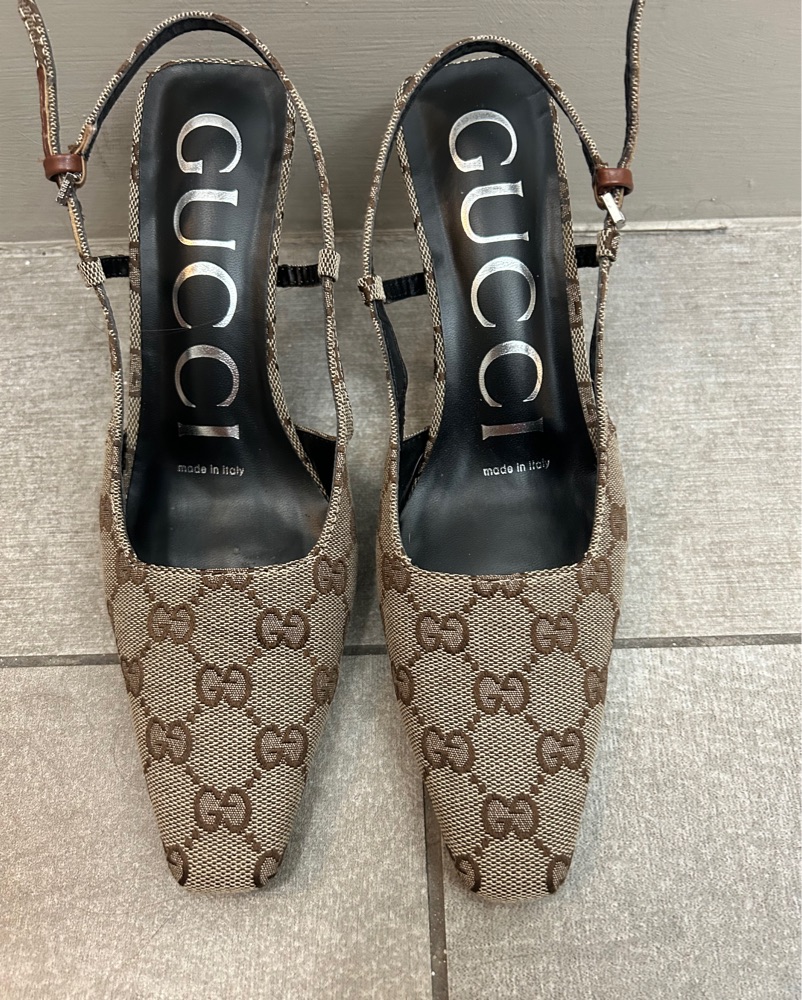 Gucci Erin GG Canvas Bit Slingback Pumps
