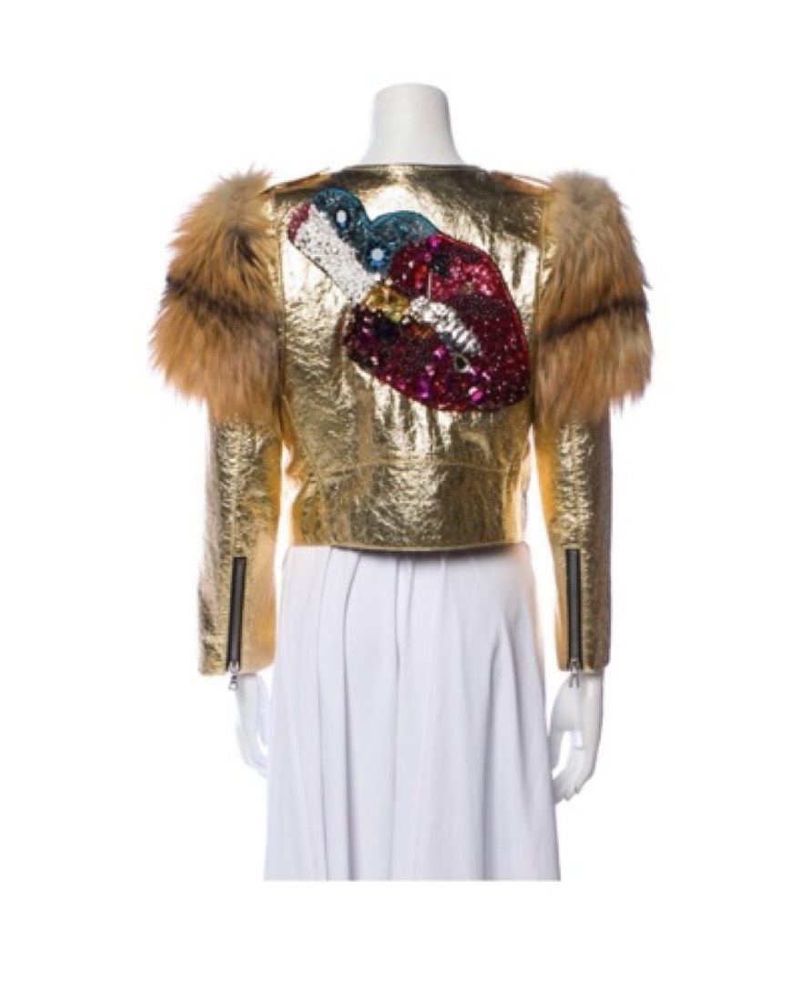 Marc Jacobs Fox Fur Leather Jacket Gold