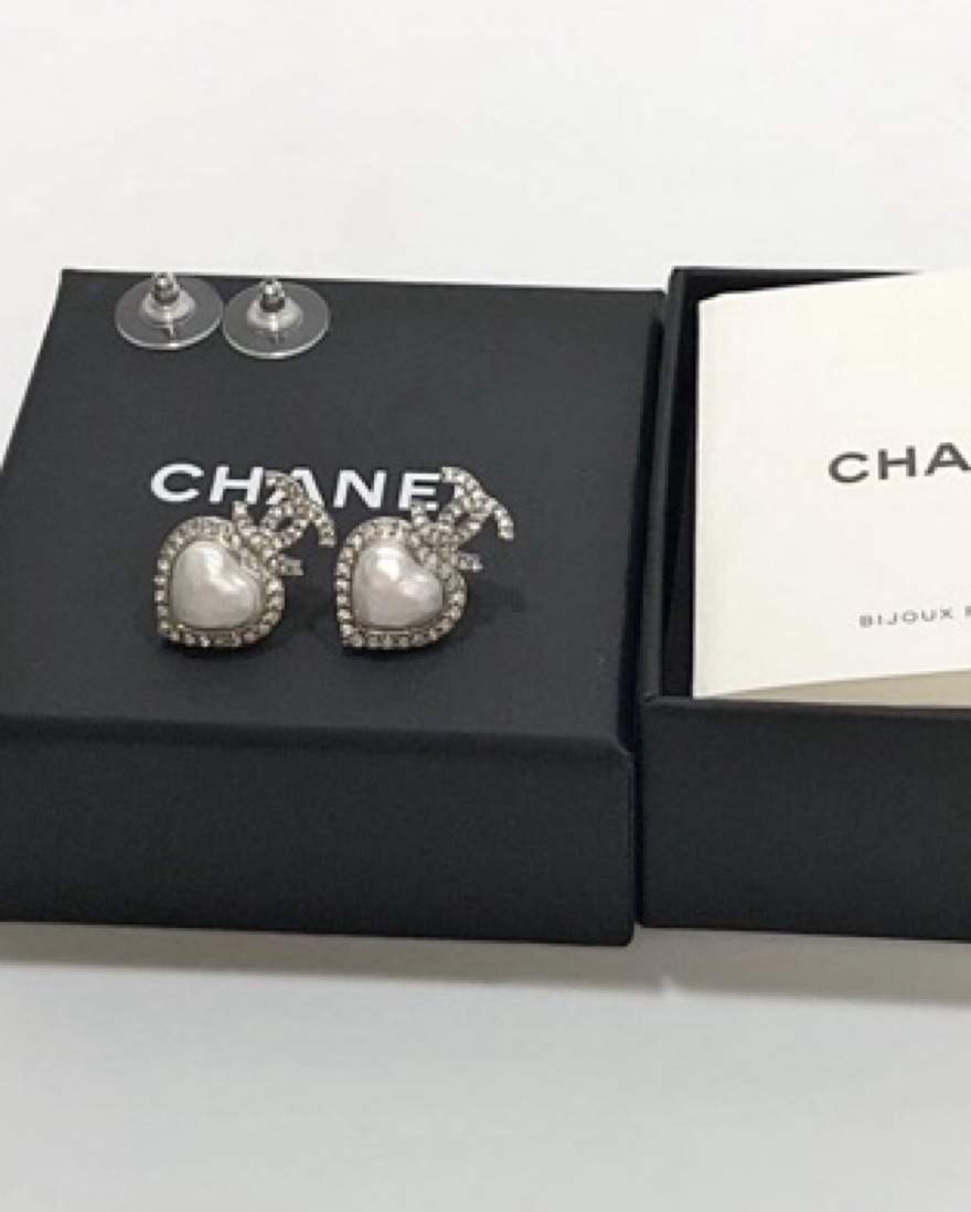 Chanel Pearl Drop Logo Earrings