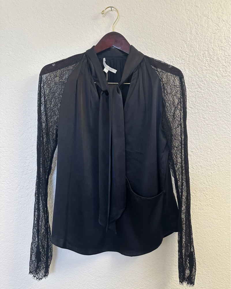 JONATHAN SIMKHAI LACE SATIN WRAP TOP (S)