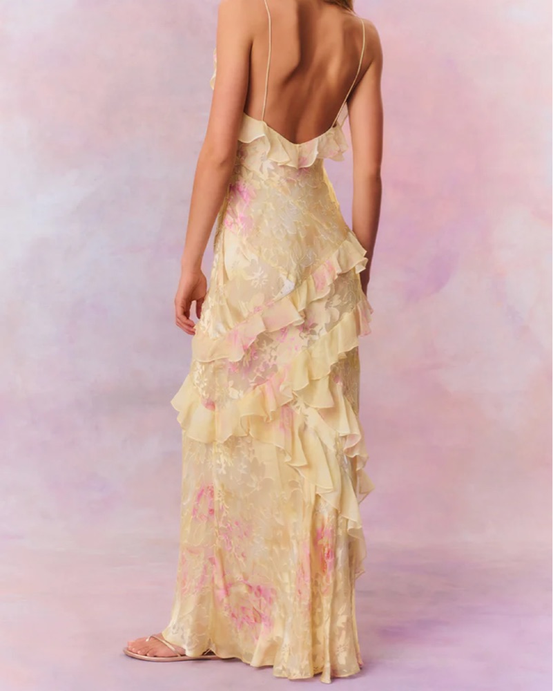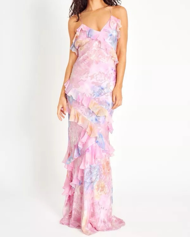 LoveShackFancy Chiffon Ruffle Maxi Dress