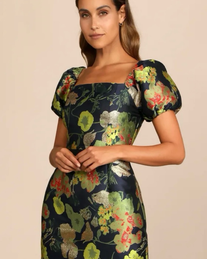 Olive Green Jacquard Midi Dress