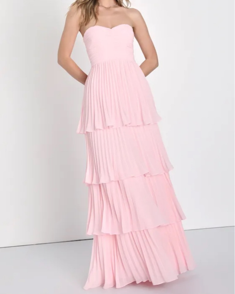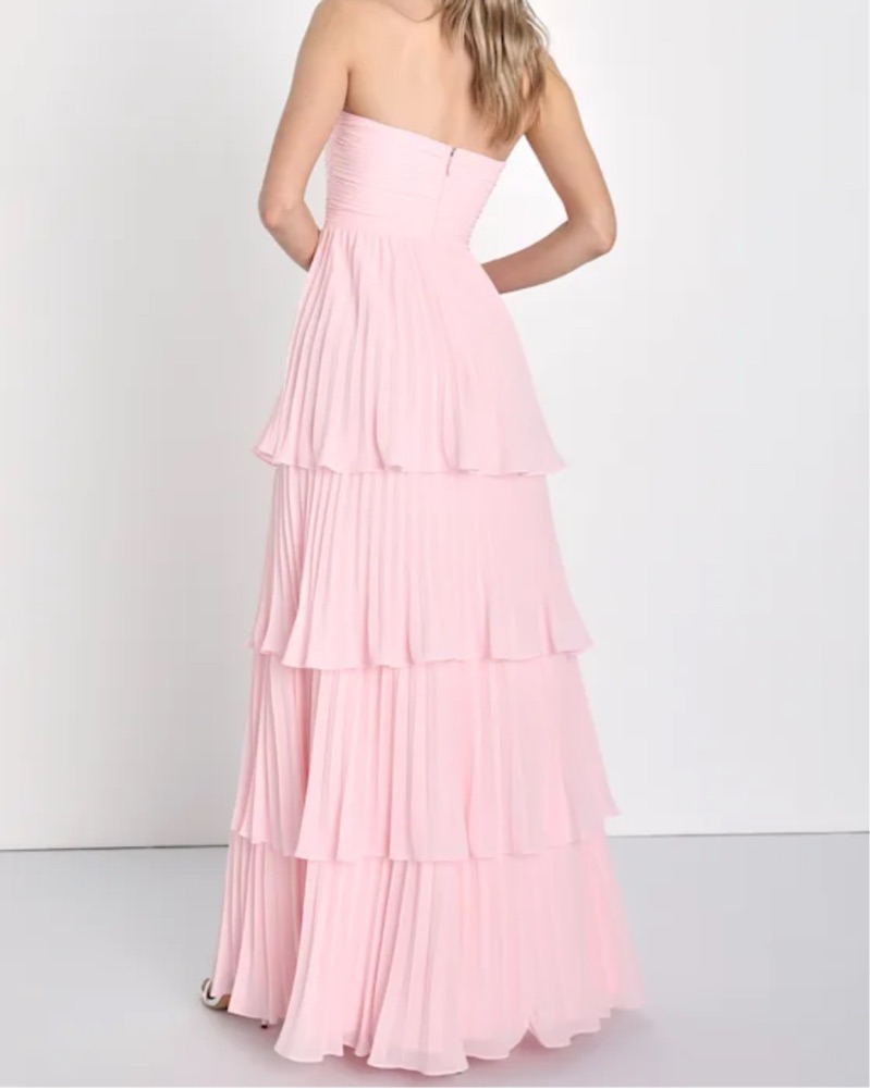 Light Pink Strapless Tiered Maxi Dress