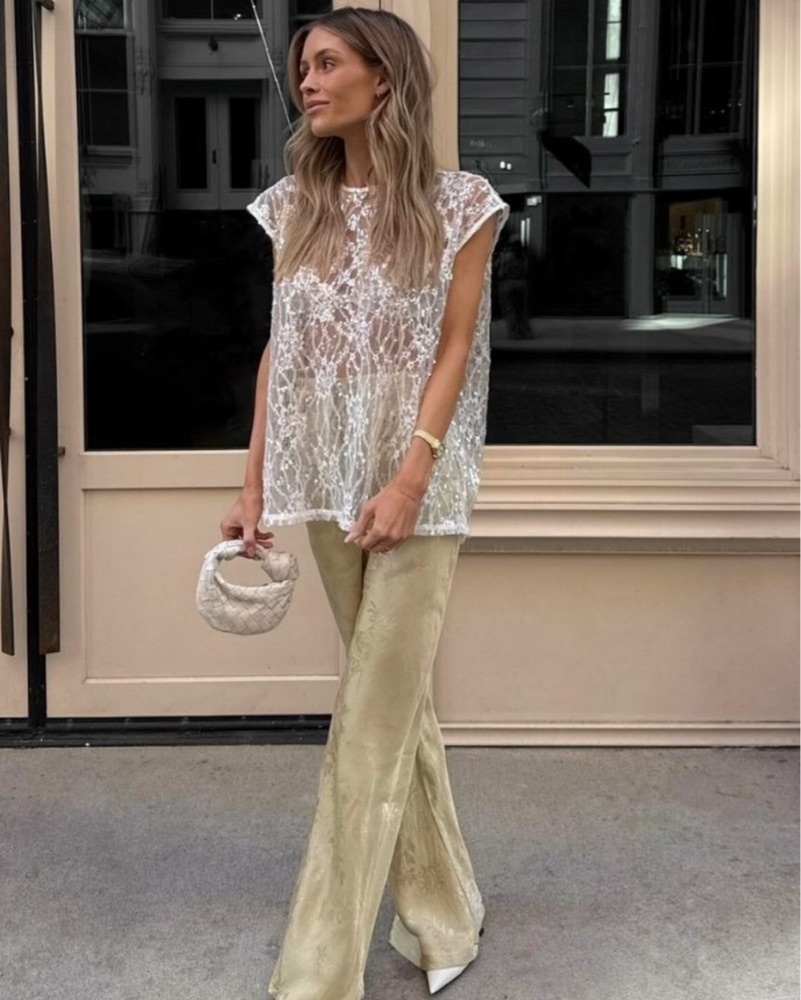 VRG GRL Set Sequin Sheer Top + Pant S