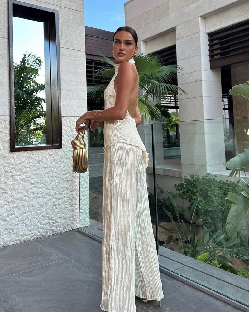 Brown Halter Maxi Set