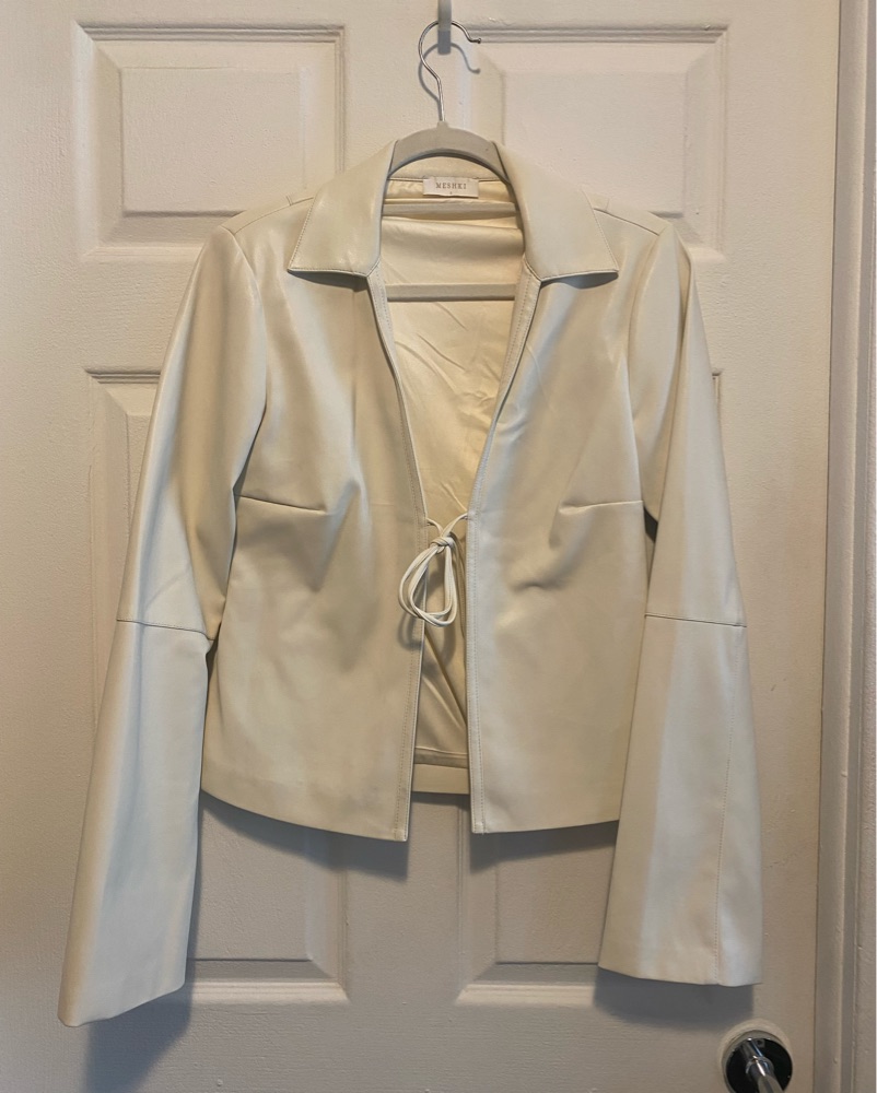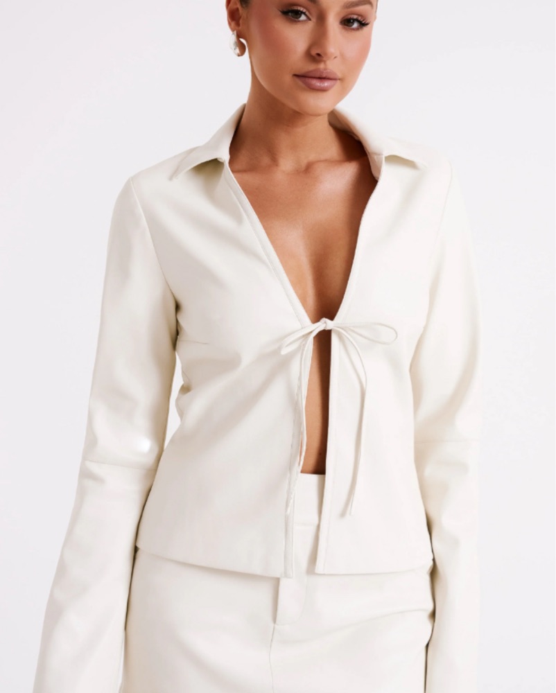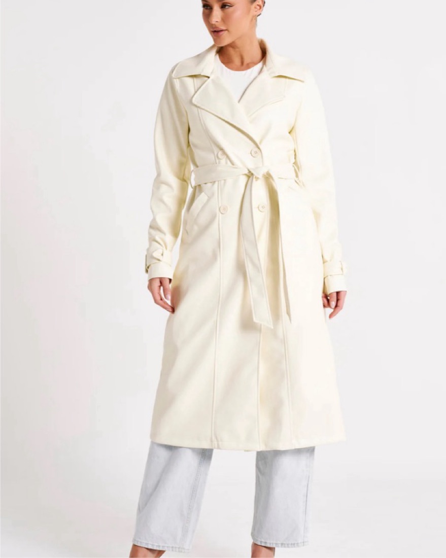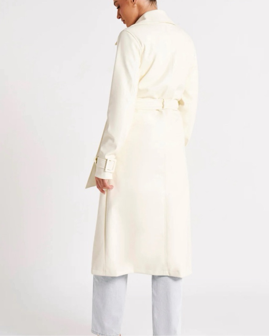 Meshki Faux Leather Ivory Trench Coat