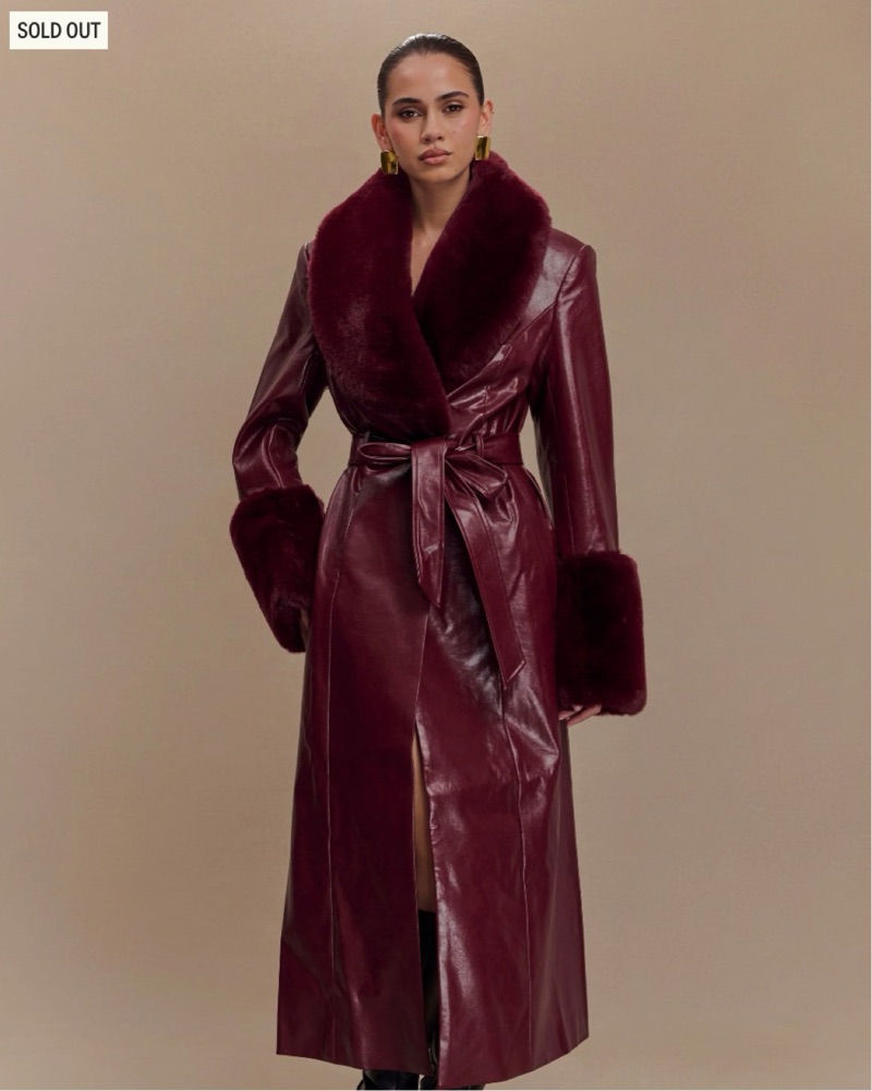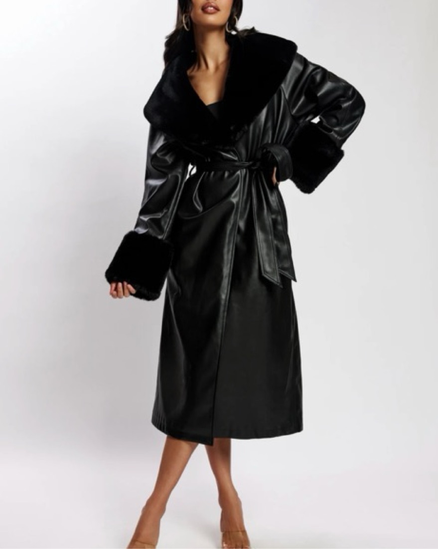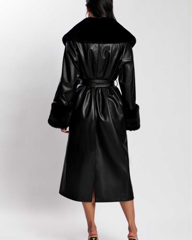 Faux Leather Trench Coat With Faux Fur