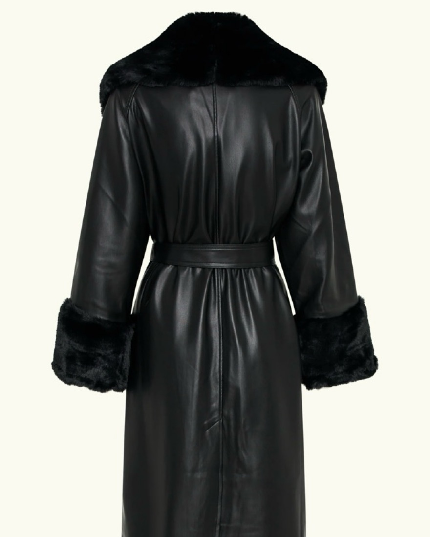 Meshki Leather Trench Coat With Faux Fur