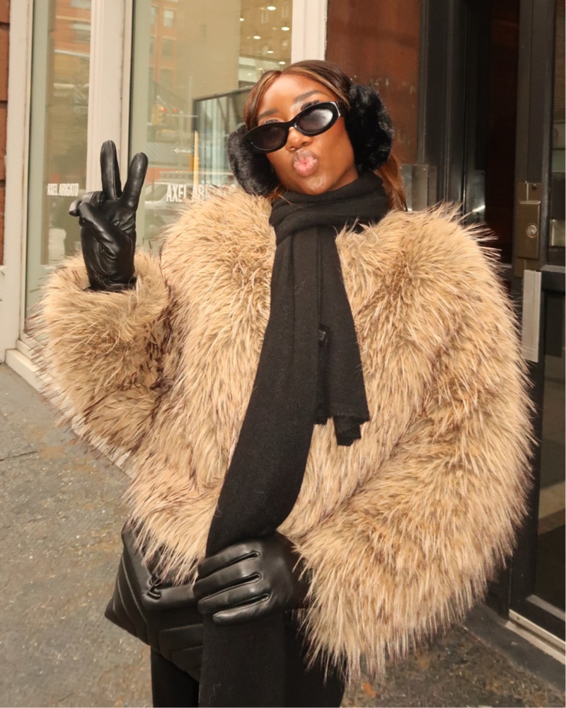 Chic Faux Fur Coat with Statement Accessories