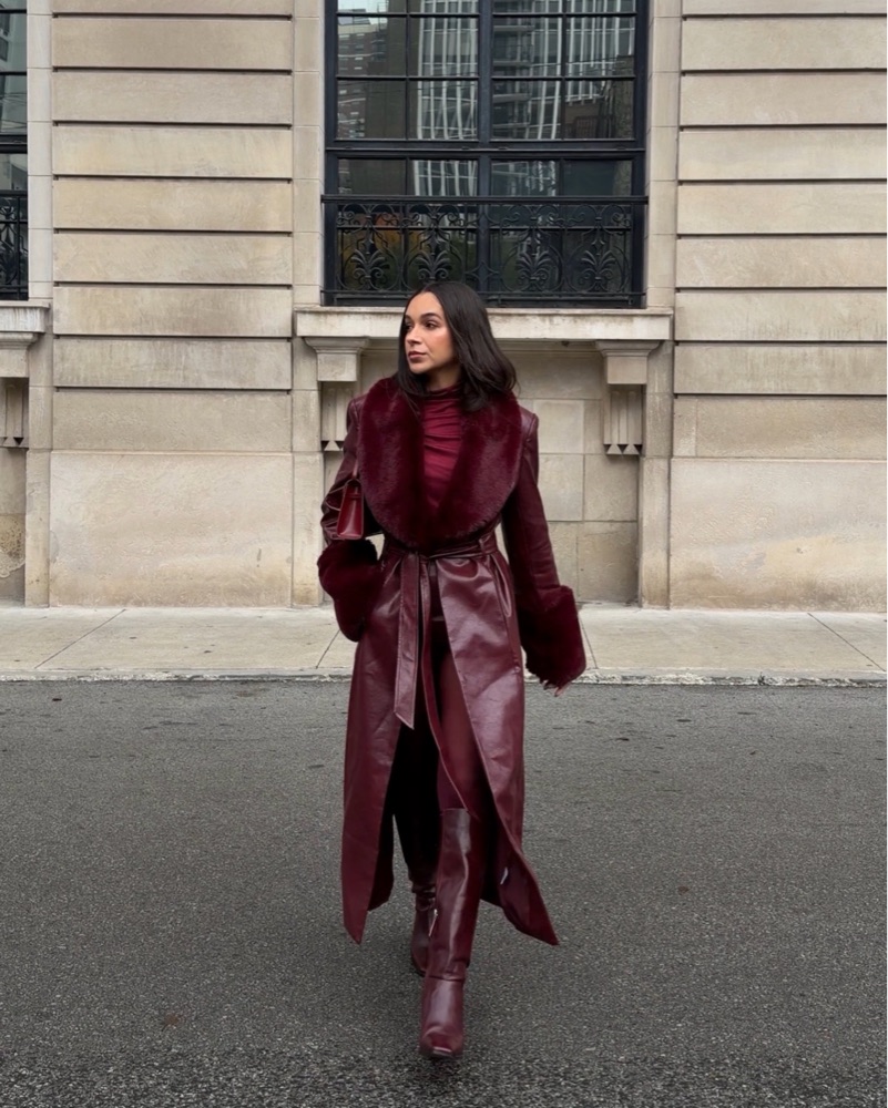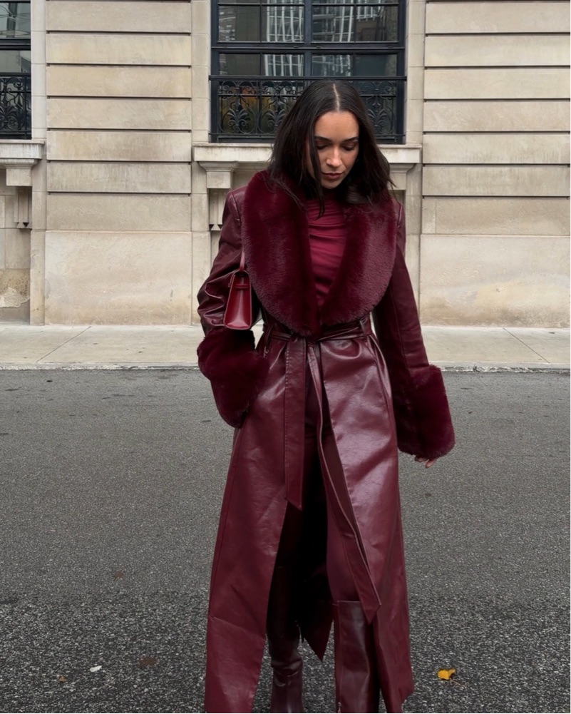 Long Burgundy Faux Leather Jacket