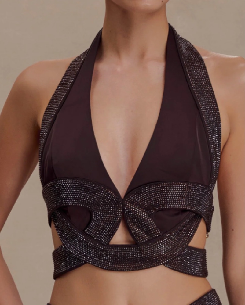 Meshki-TAMRA Strappy Diamante Top - Blac