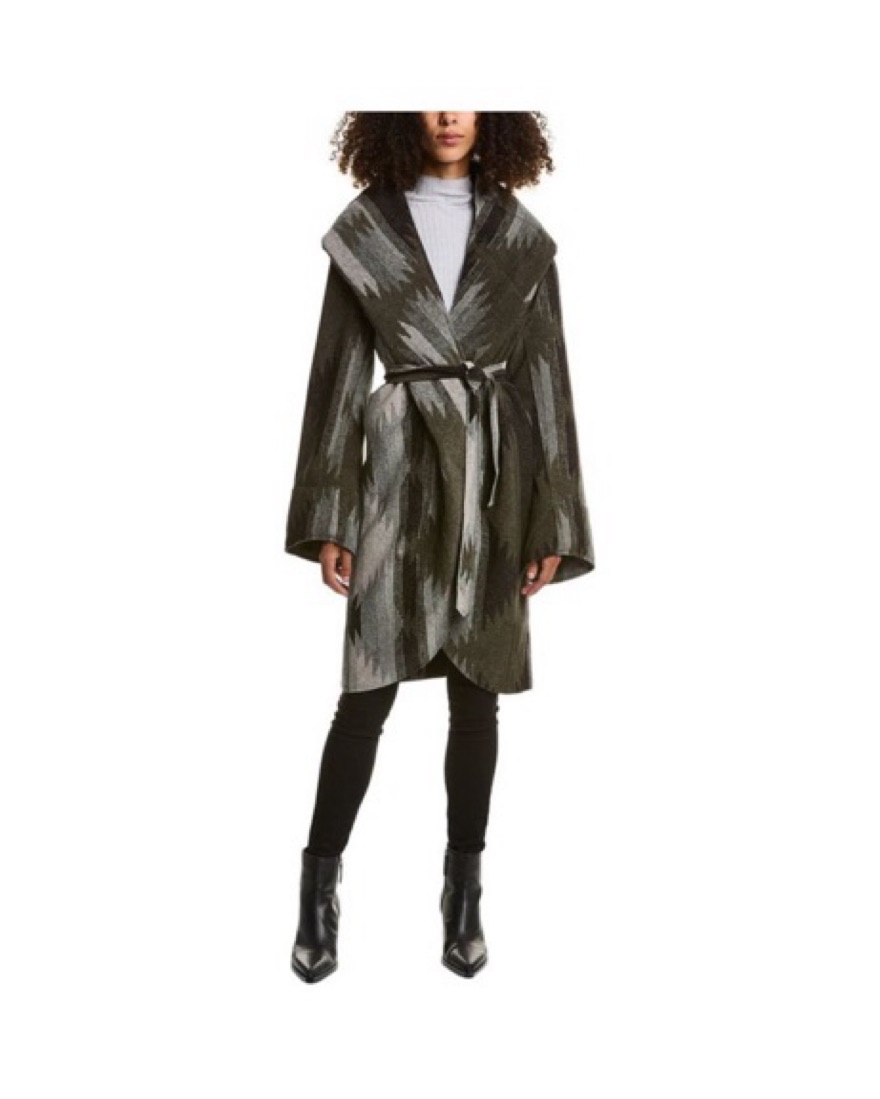 Chic Ikat-Inspired Hooded Coat