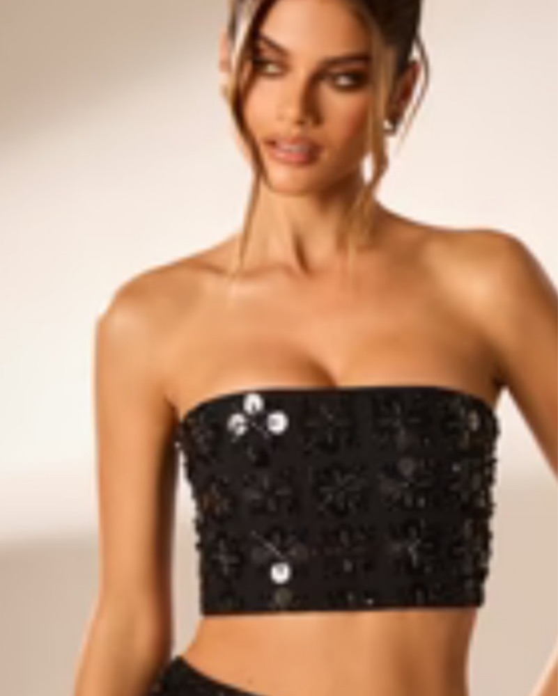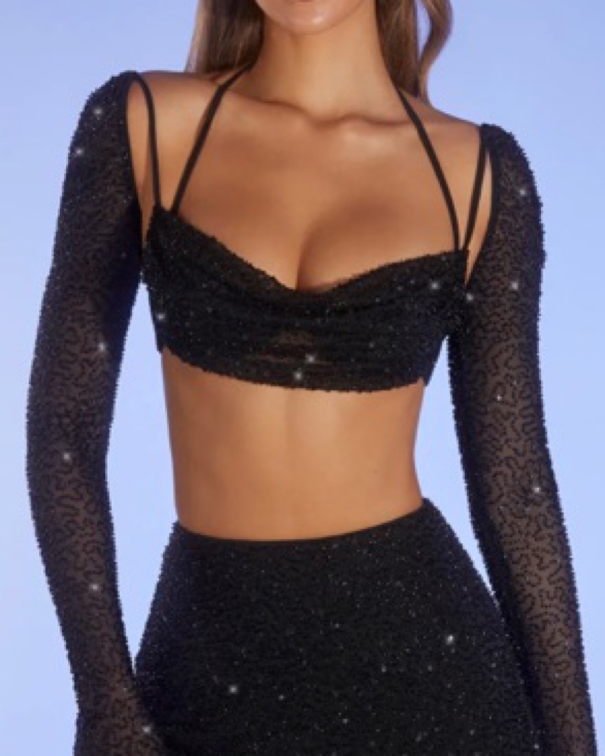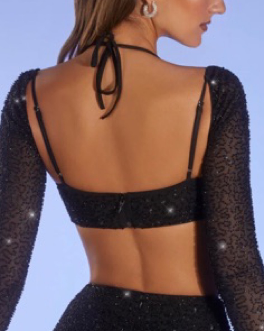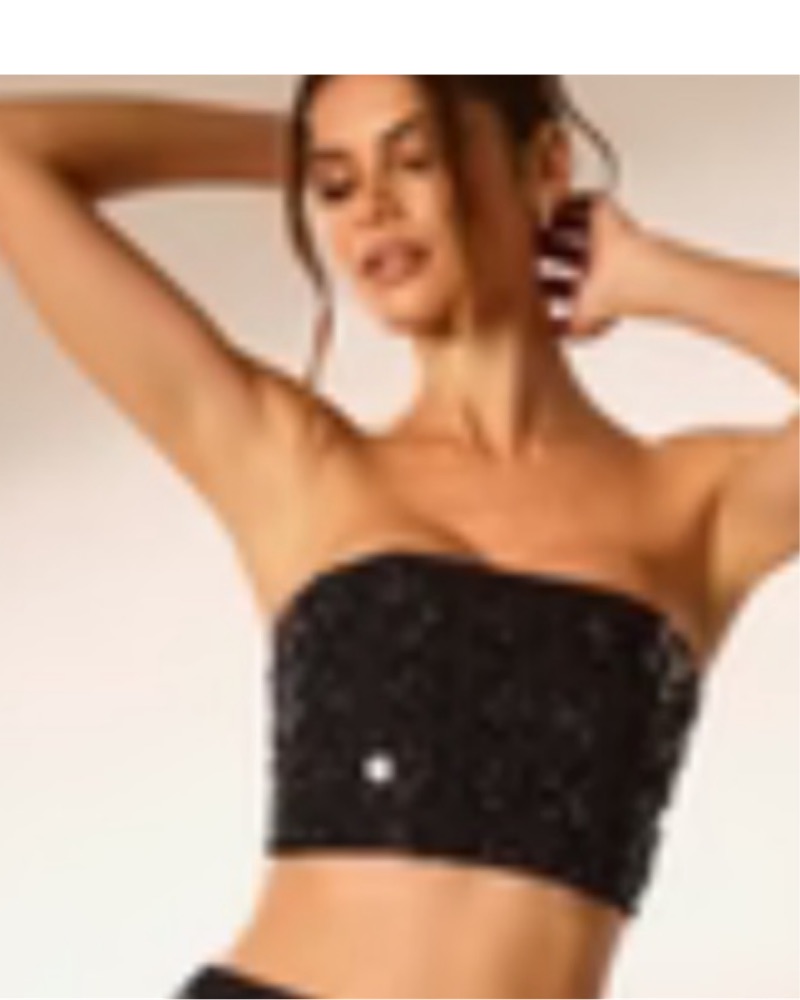 Oh Polly Black Sequin Bra Crop Top