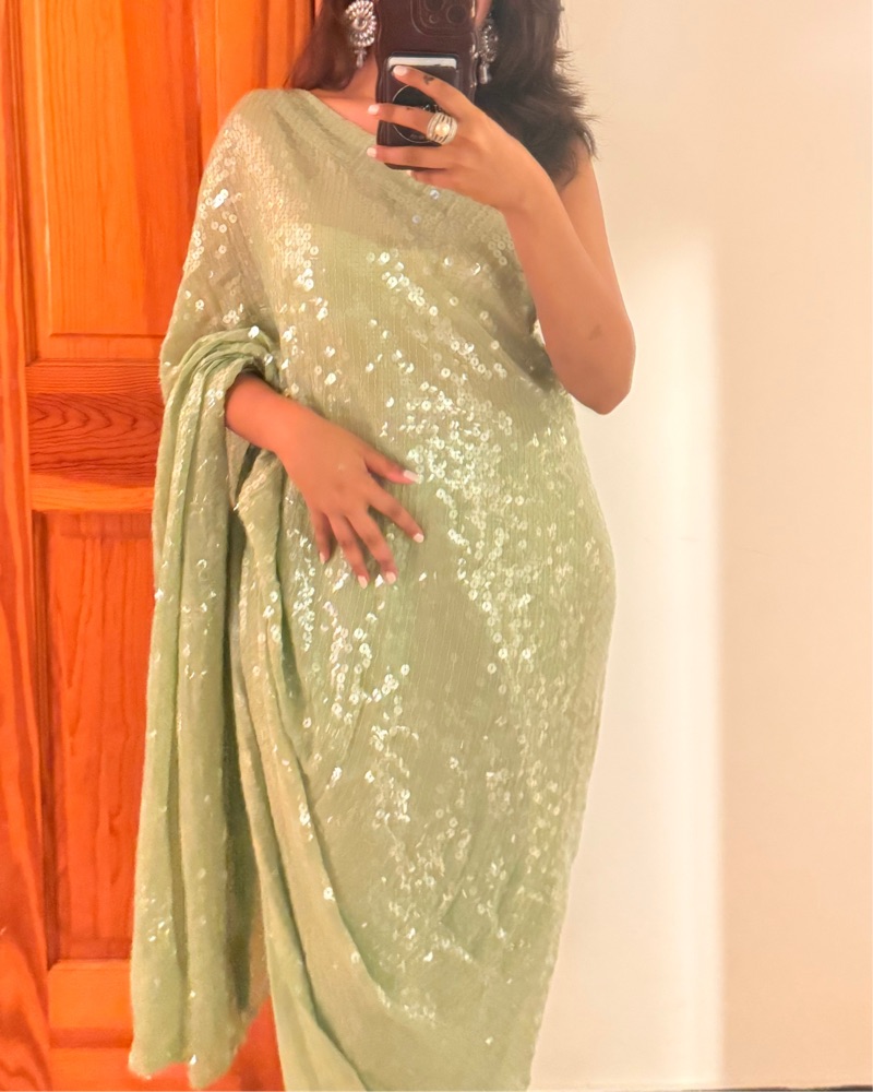 Mint Green Sequin Saree!