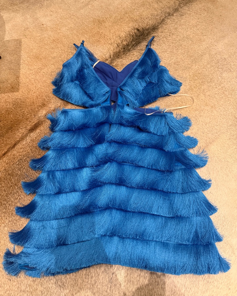 Patbo Blue Cut Out Fringe Mini Dress XS