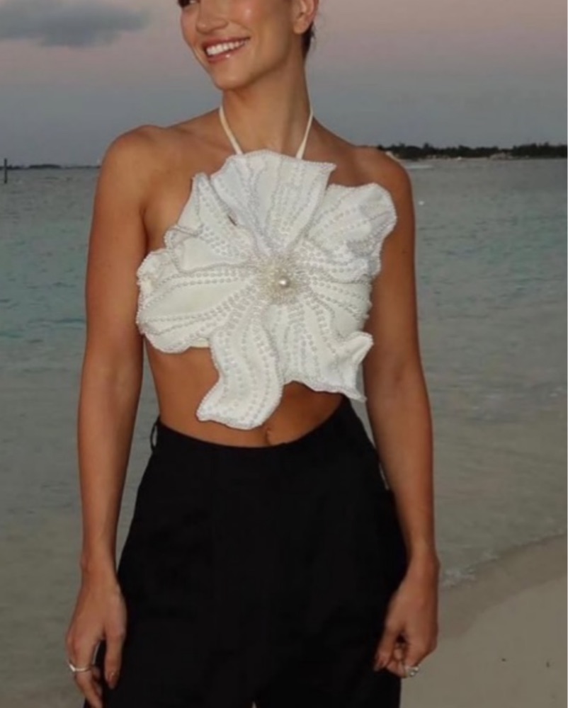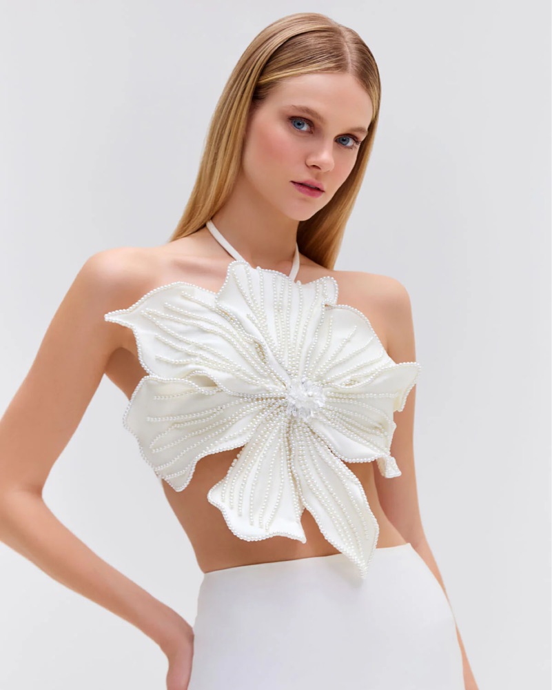 PatBo Hand-Beaded Pearl + Fringe Mini