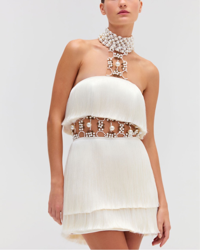 Sold Out Patbo Pearl & Fringe Mini Dress
