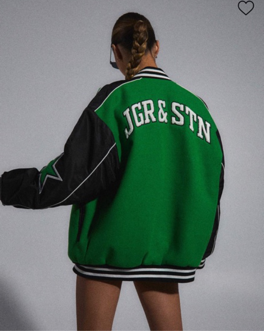 Green/Black Letterman Bomber Jacket