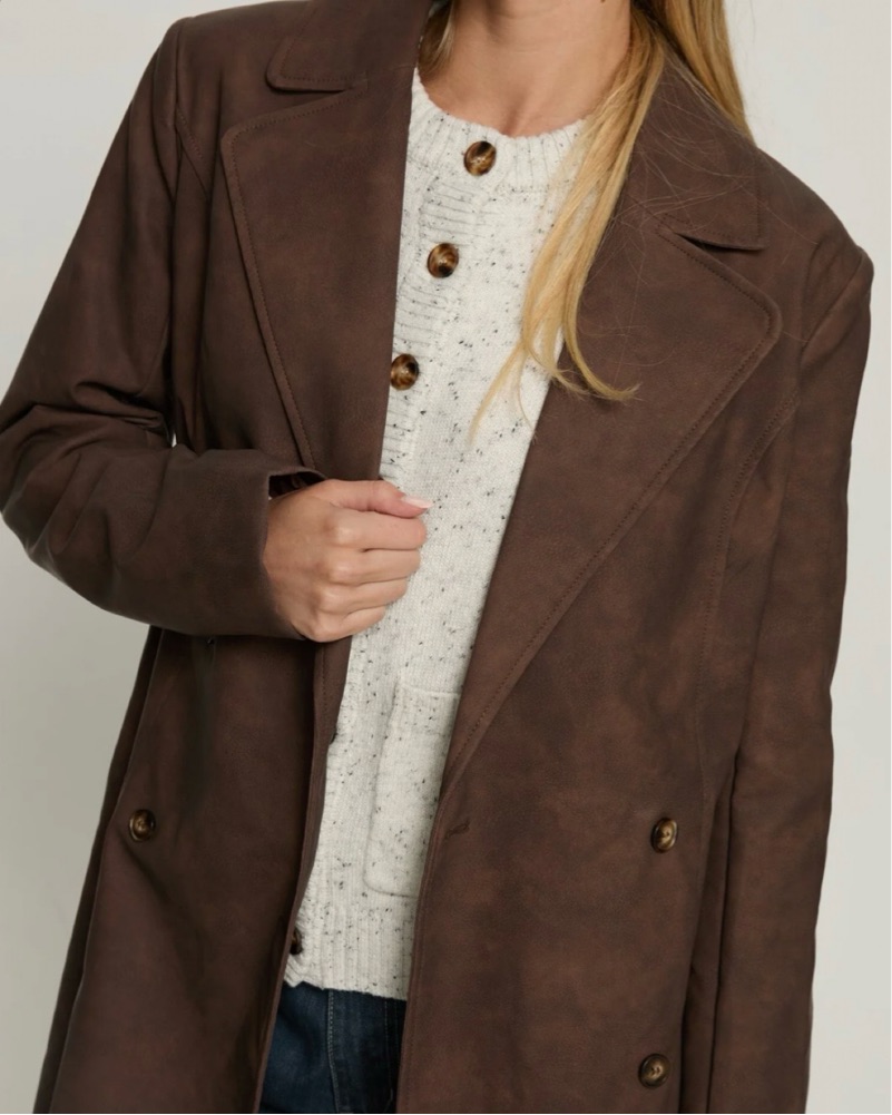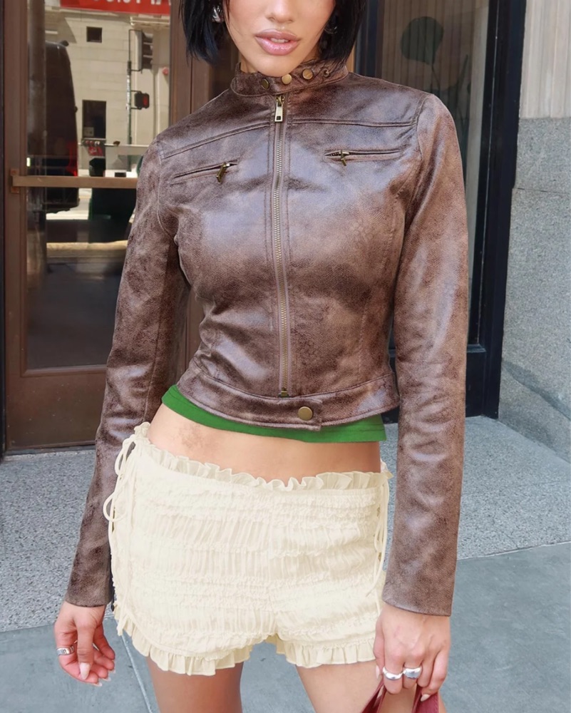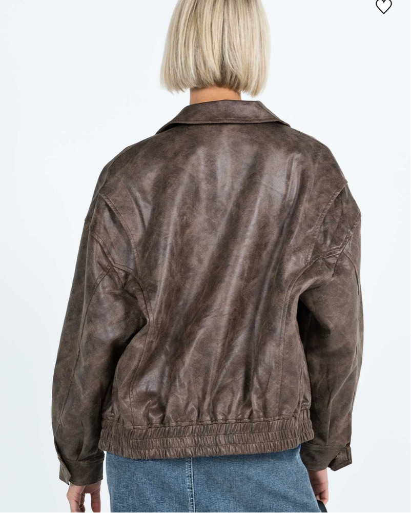 Faux Washed Brown Leather Jacket