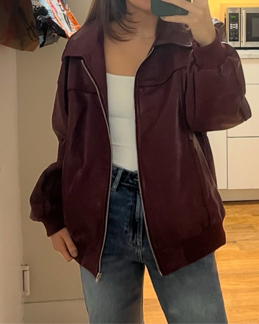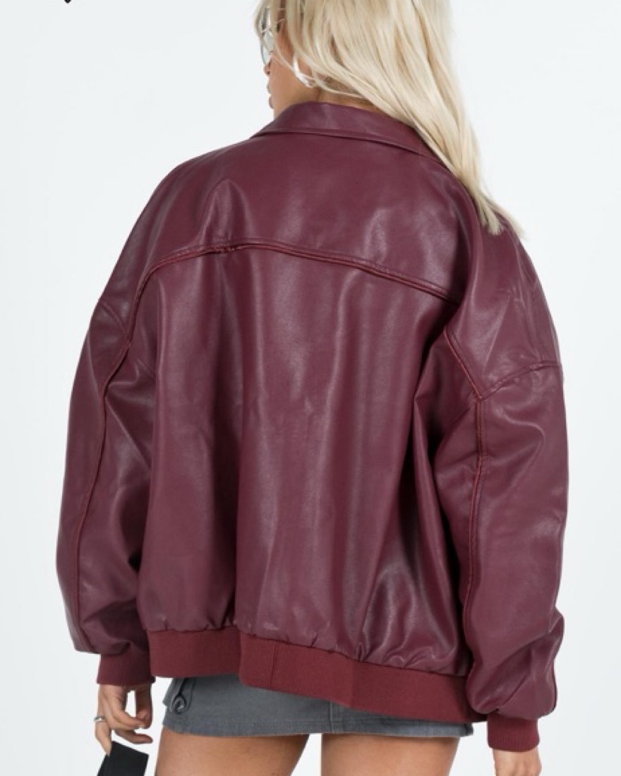 Burgandy faux leather bomber jacket