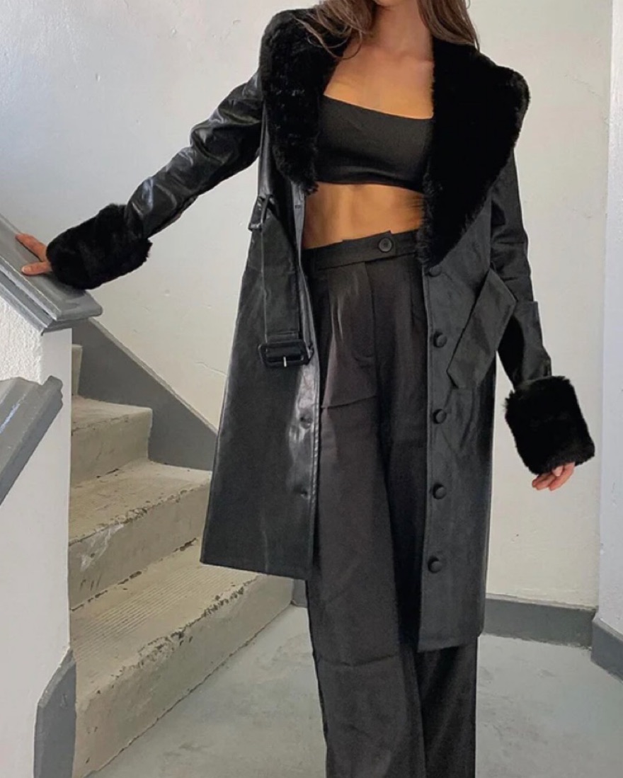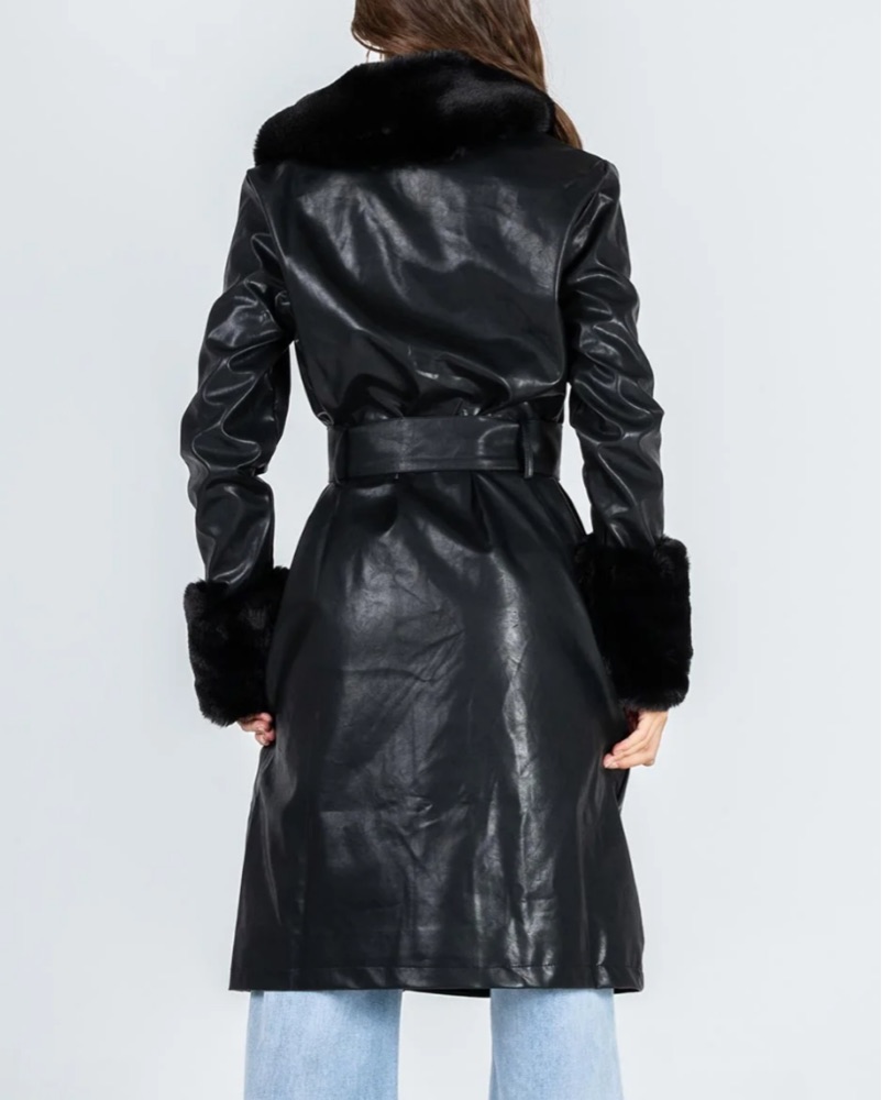 Fur-Trimmed Leather Coat