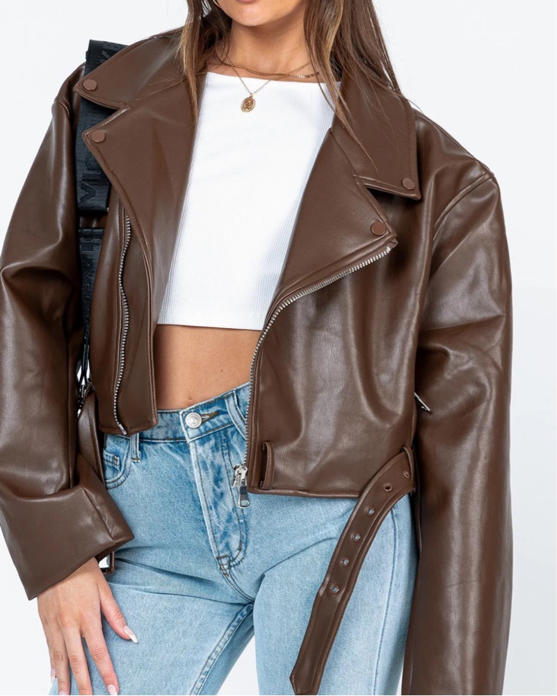 Princess Polly Brown FauxLeather Jacket