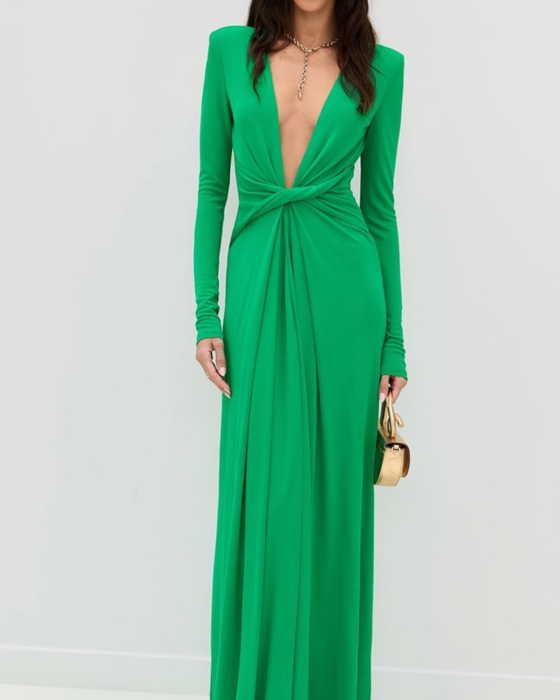 Backless Green Silk Dress