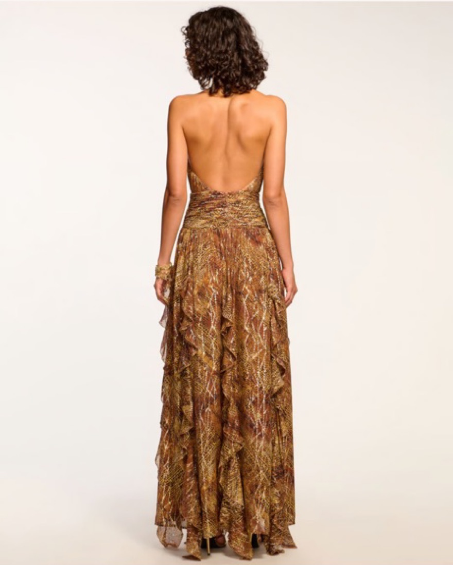 Ramy Brook Leigh Metallic Halter Gown