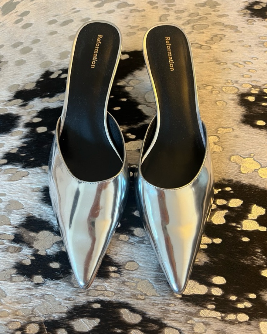 Reformation Silver Kitten Heel Size 9