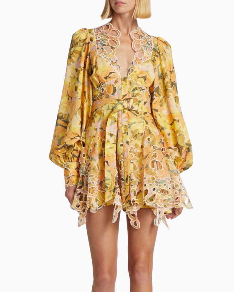 Printed Eyelet-Embroidered Minidress