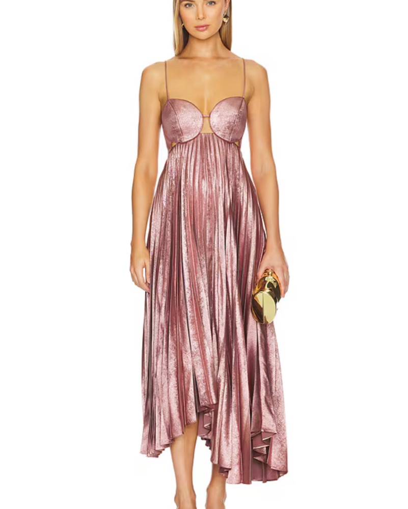ACLER Metallic Pleated Midi-Dress