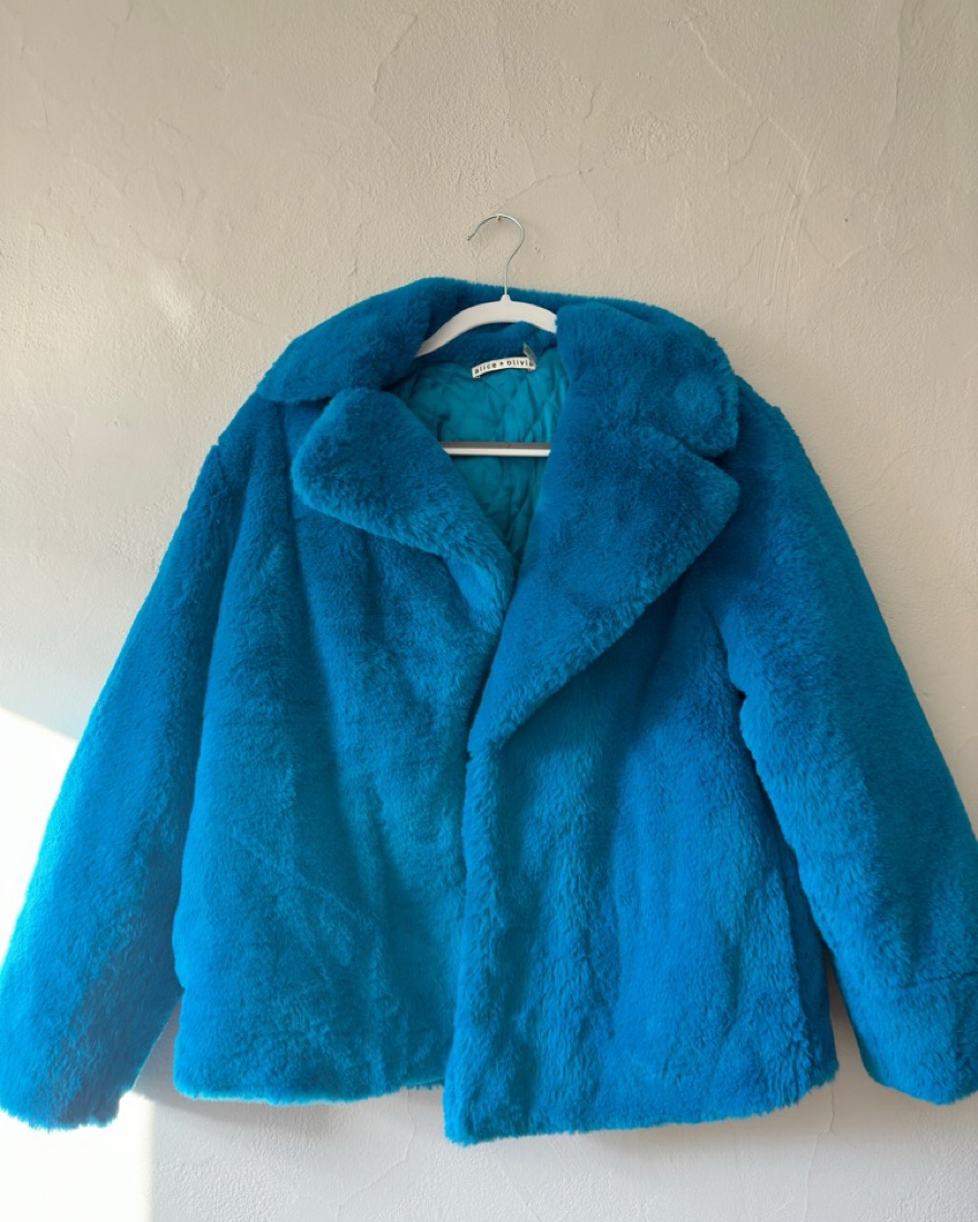 Alice & Olivia Eextric Blue Fur Jacket