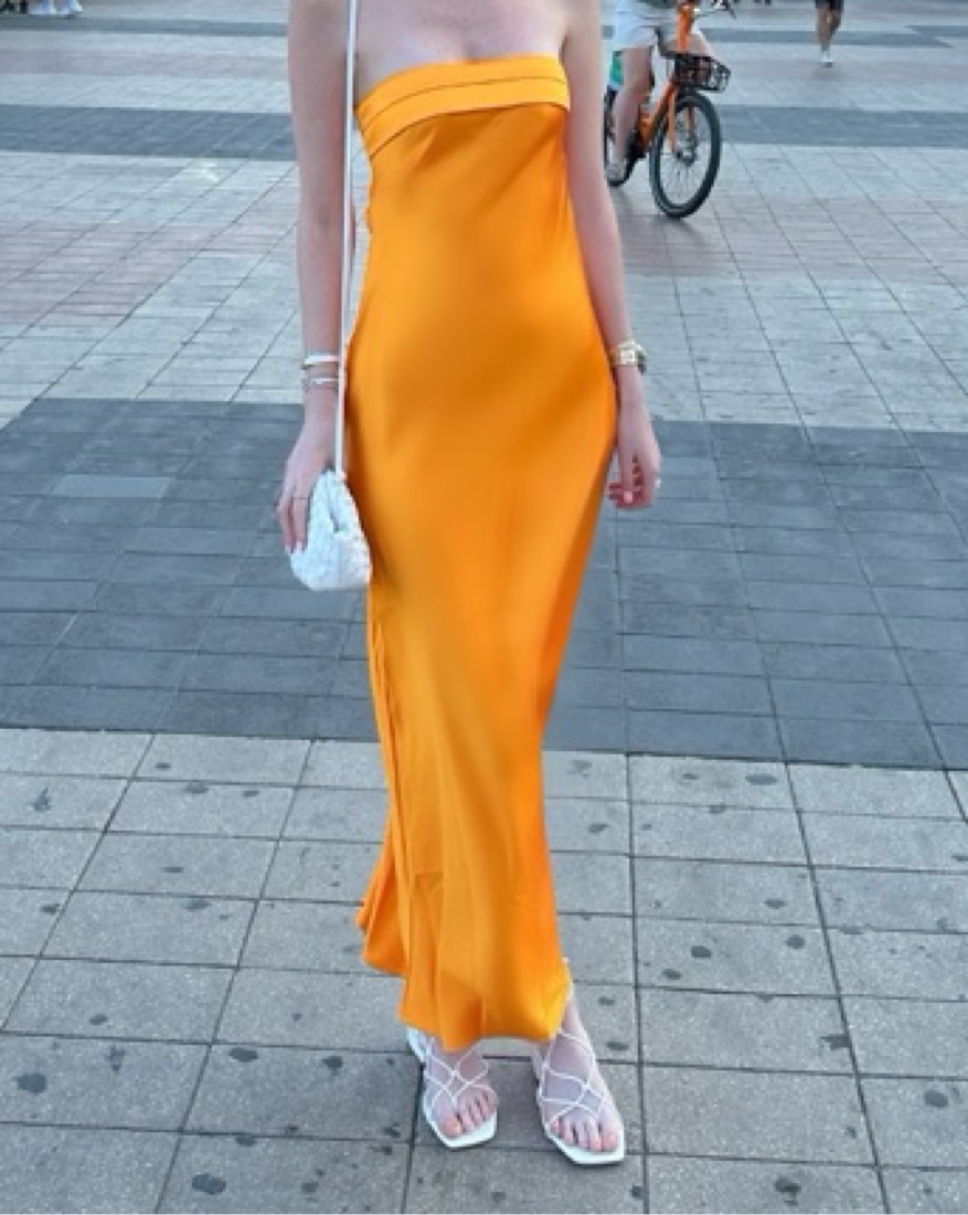 Strapless Orange Satin Dress