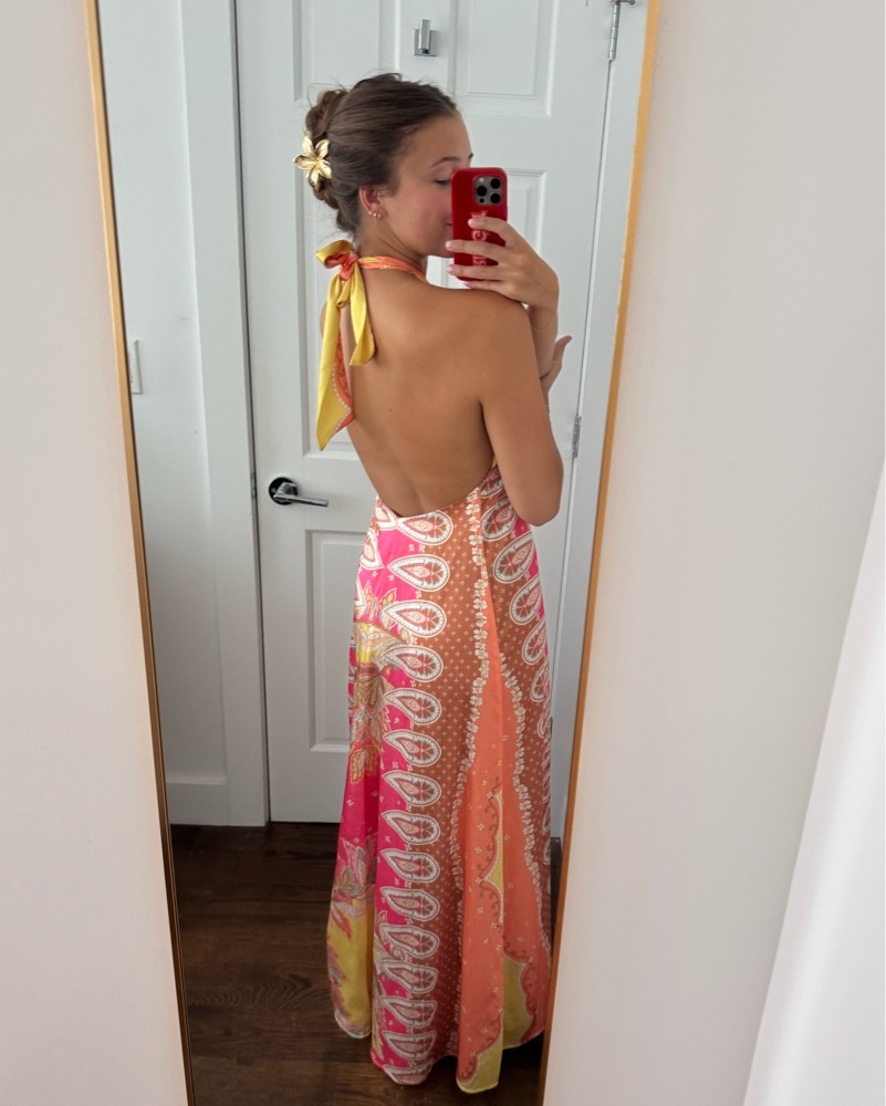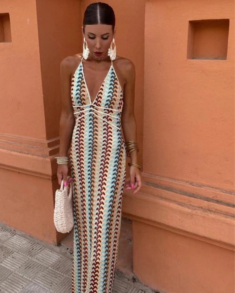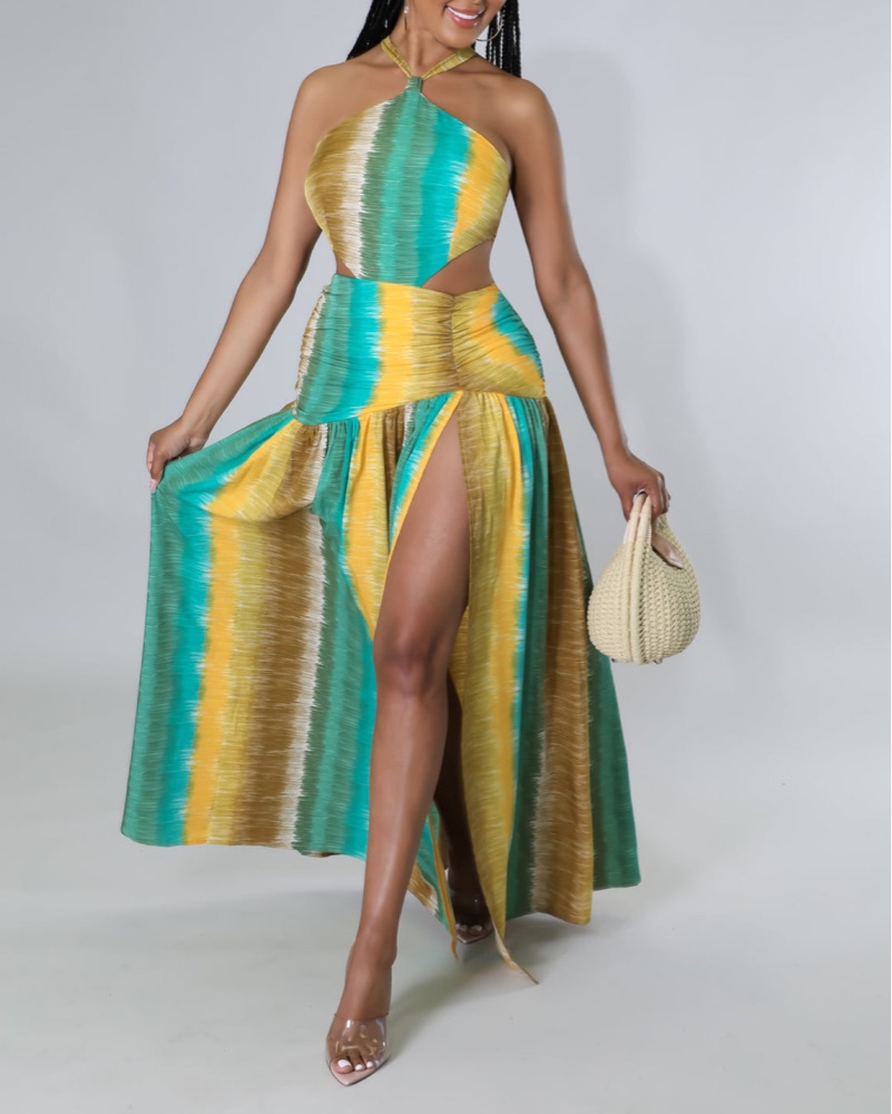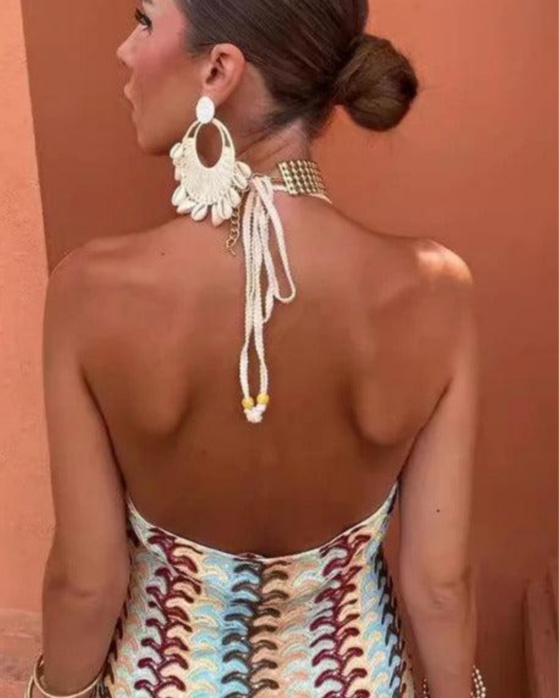 Vibrant Patterned Halter Maxi Dress