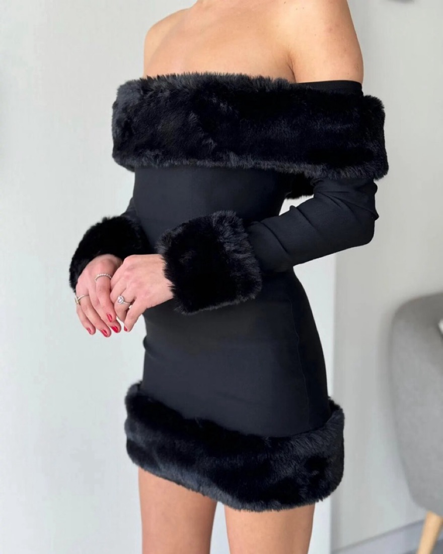 Off The Shoulder Faux Fur Dress