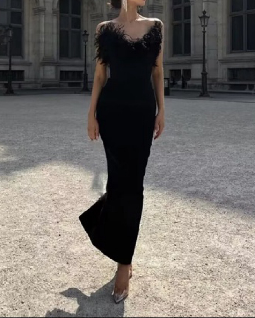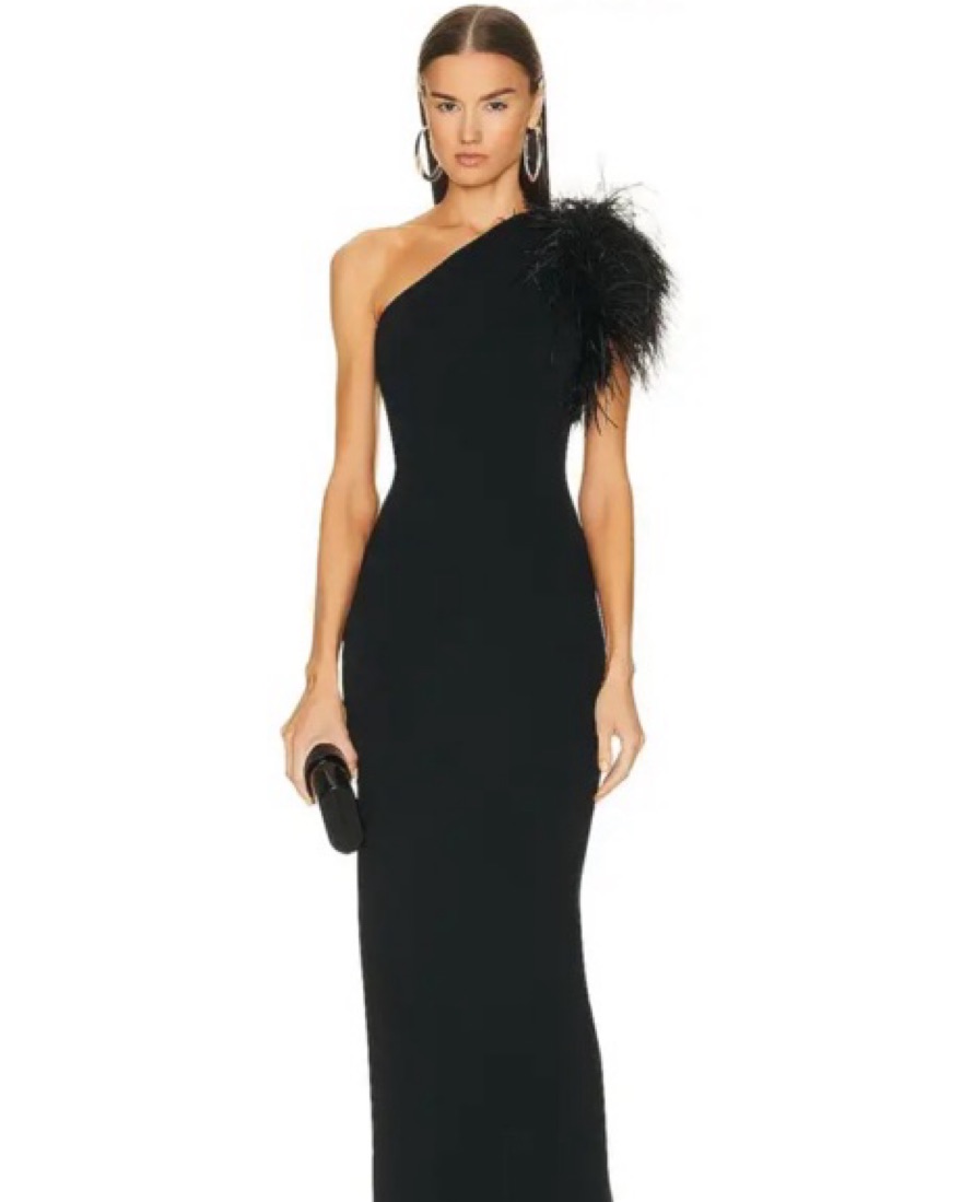 Black Gown One Shoulder Feather