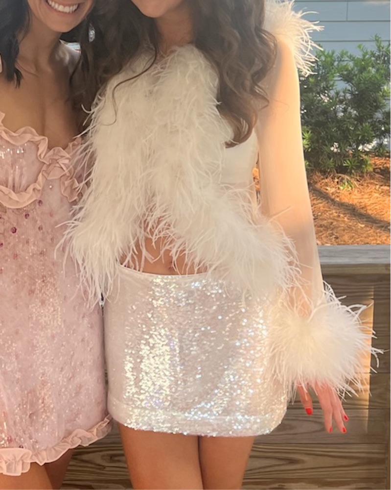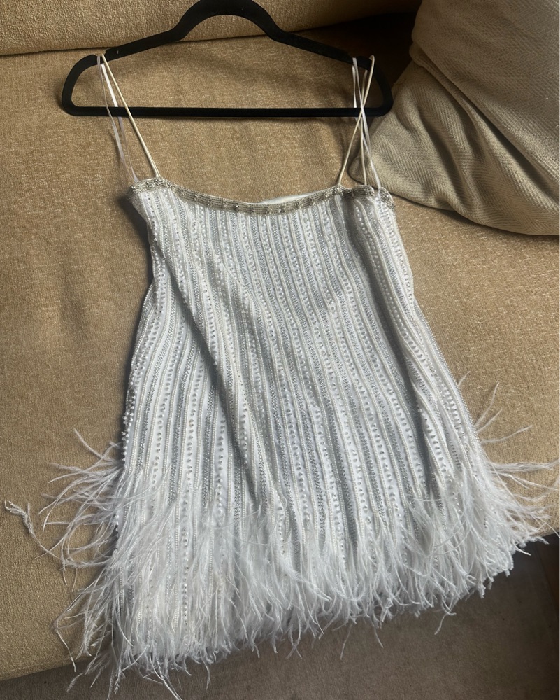 White Sequin Feather Dress