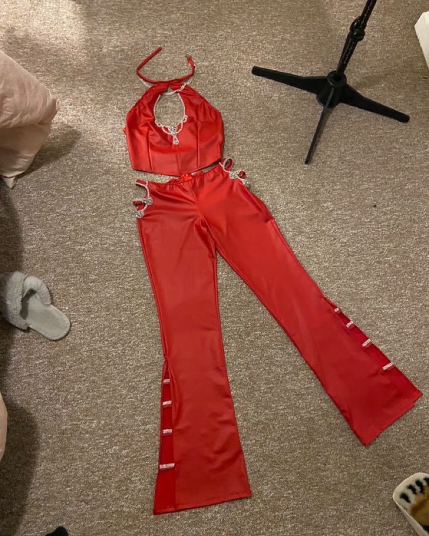 Britney Spears Red Latex Jumpsuit