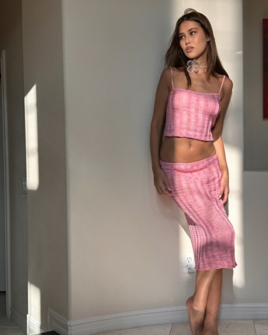 Danielle Guizo slinky pink top and skirt
