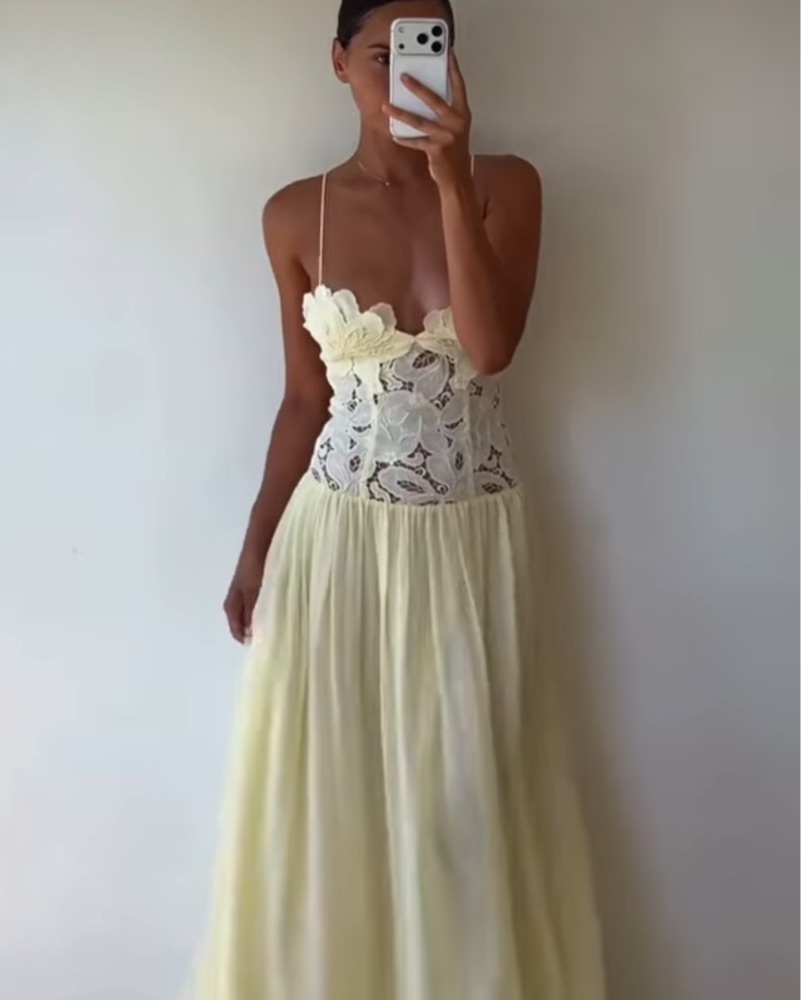 ELLIATXRevolve Yellow/Floral Tiered Gown